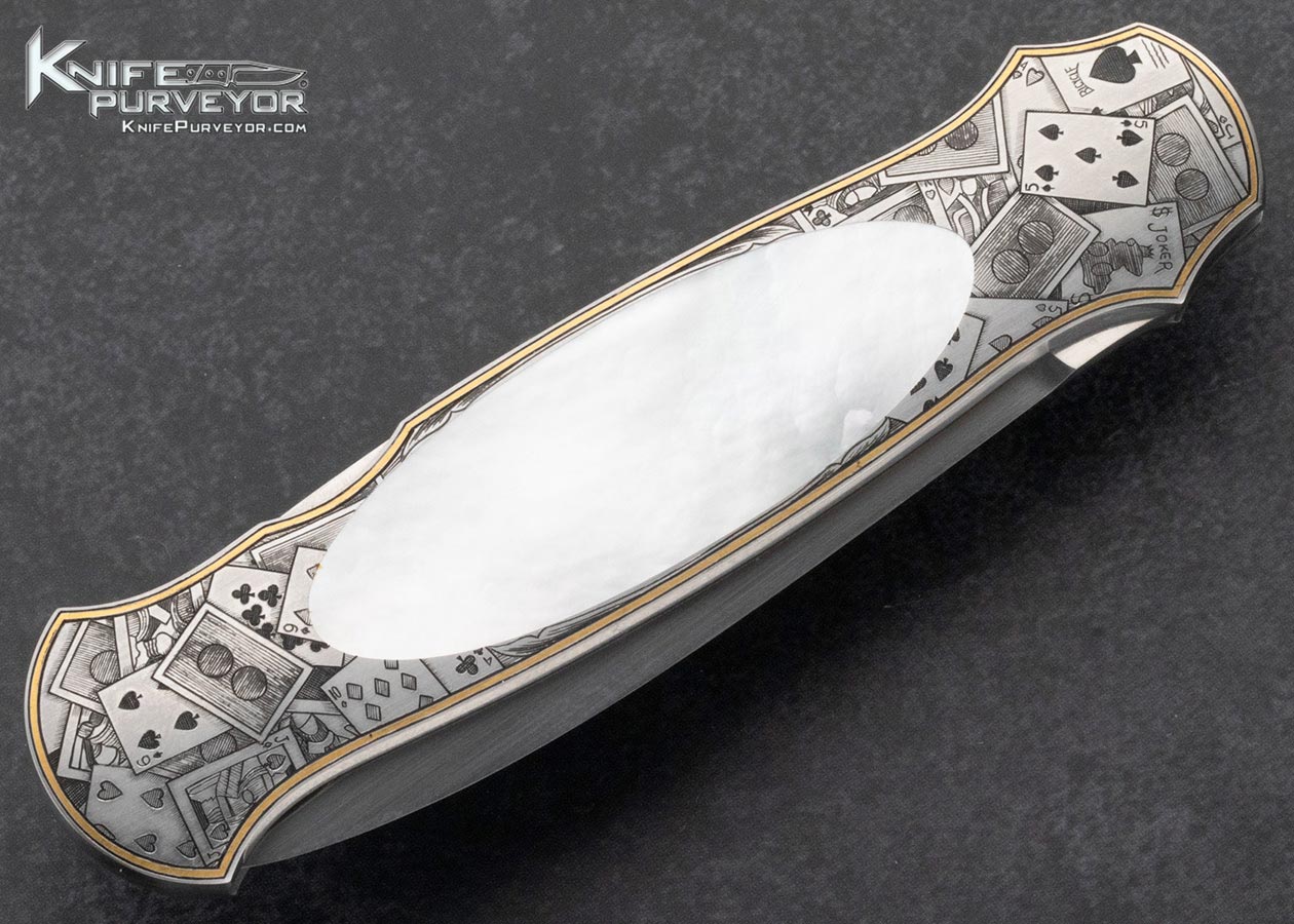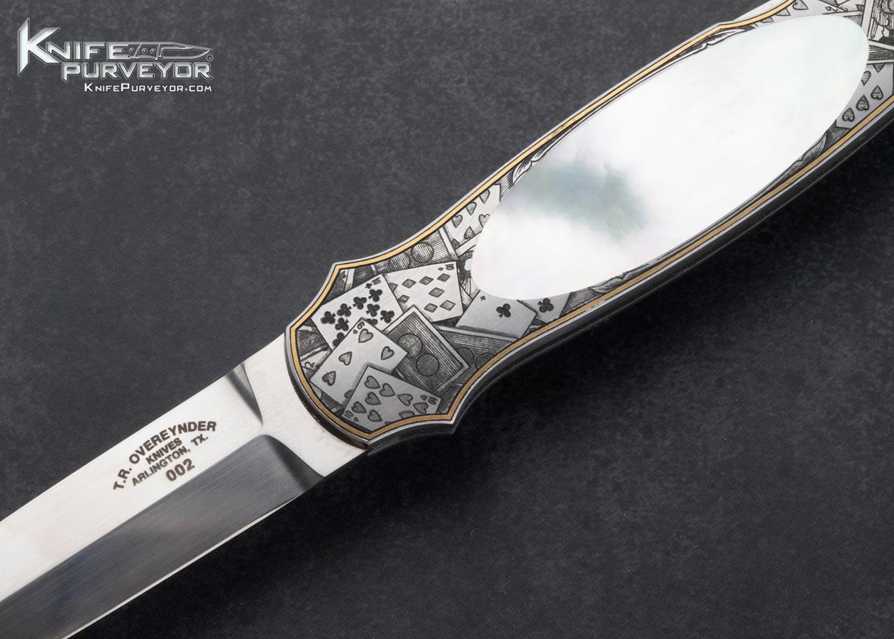 Tom Overeynder Custom Knife Ray Cover Jr. Engraved Mother of Pearl Shell Interframe Lockback Dagger
