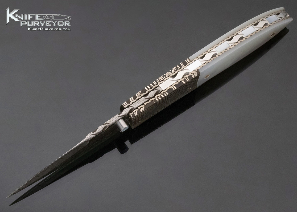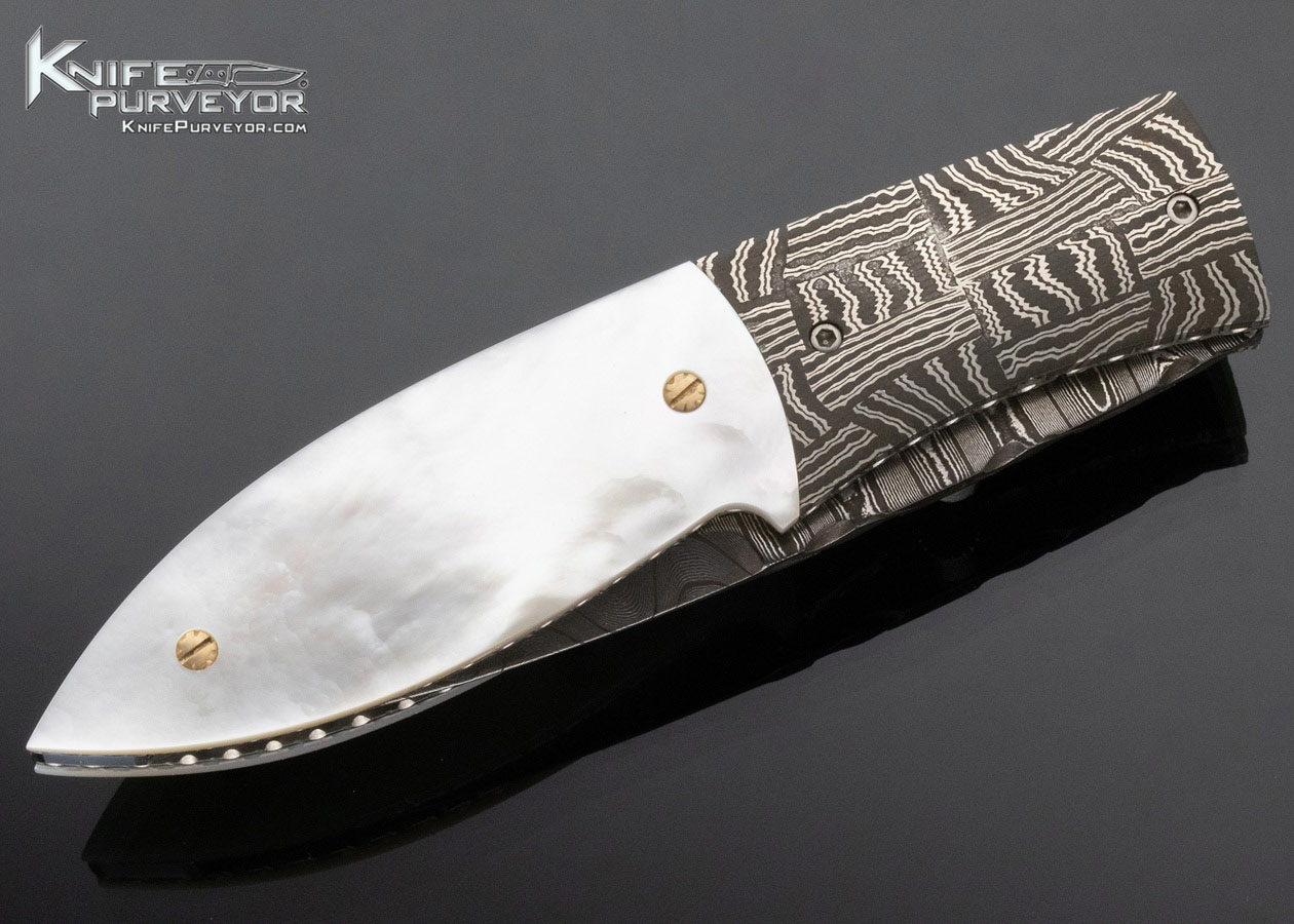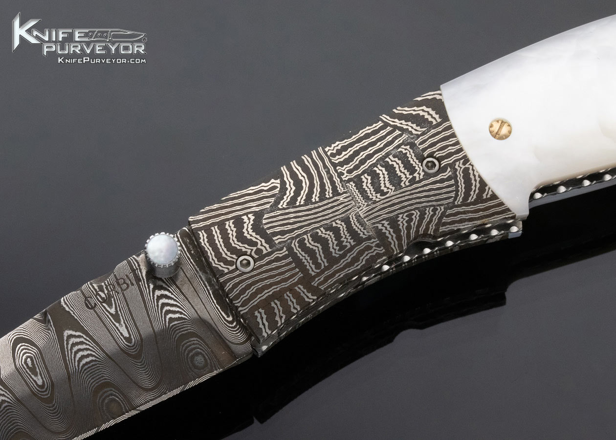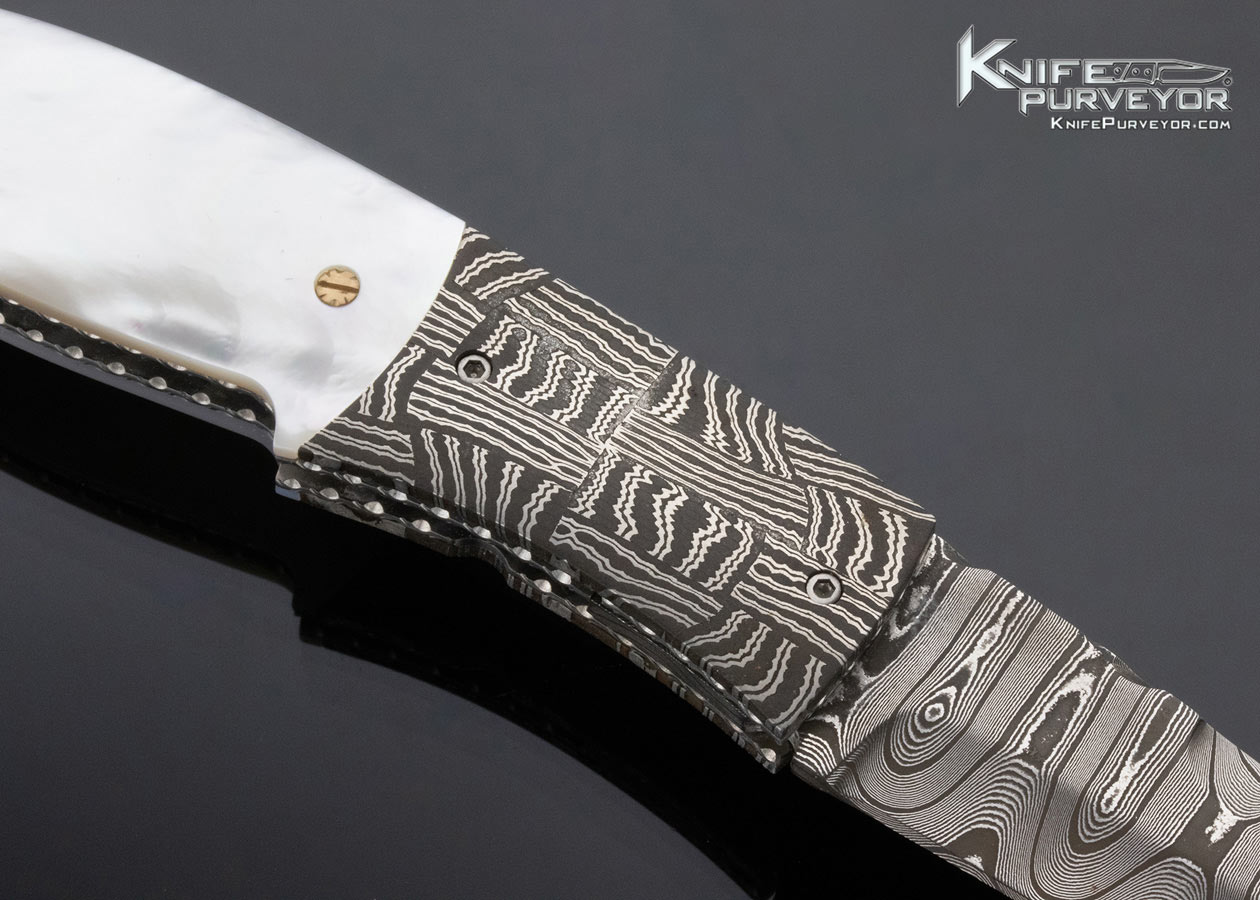 Jerry Corbit Custom Knife with Robert Eggerling Mosaic Damascus and Mother of Pearl Linerlock