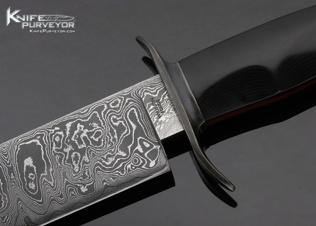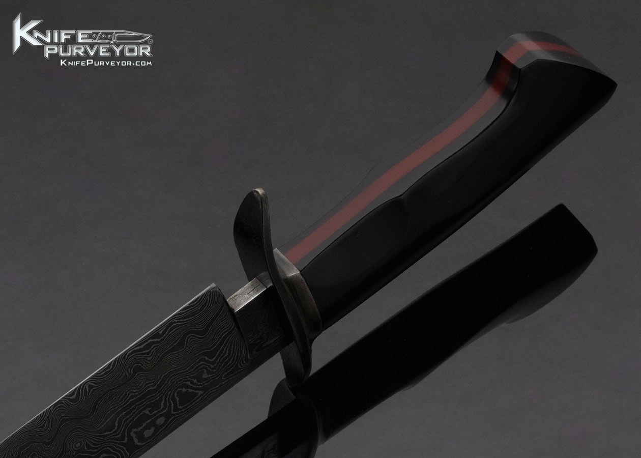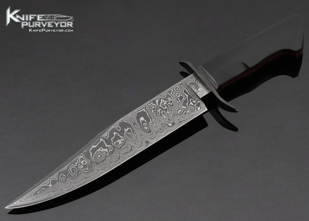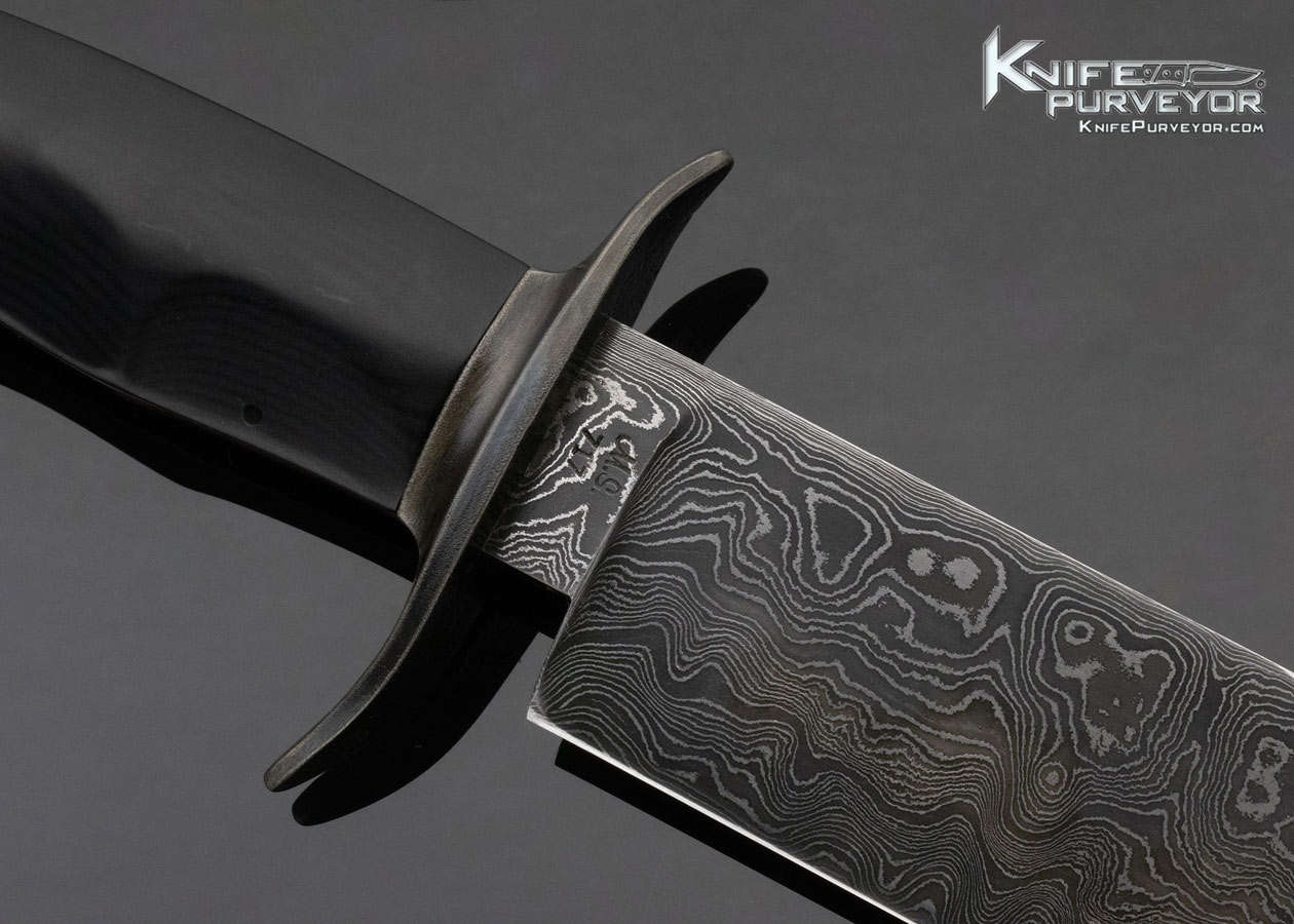 Aaron Wilburn Custom Knife Fixed Blade Damascus and Black Micarta Bowie