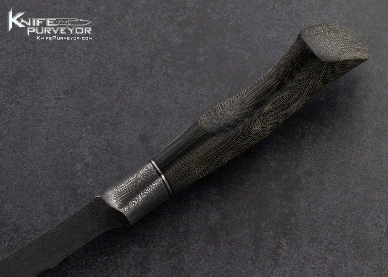 Adam DesRosiers Custom Knife Master Smith Sole Authorship Damascus and Canvas Micarta Integral Hunter with Leather Sheath