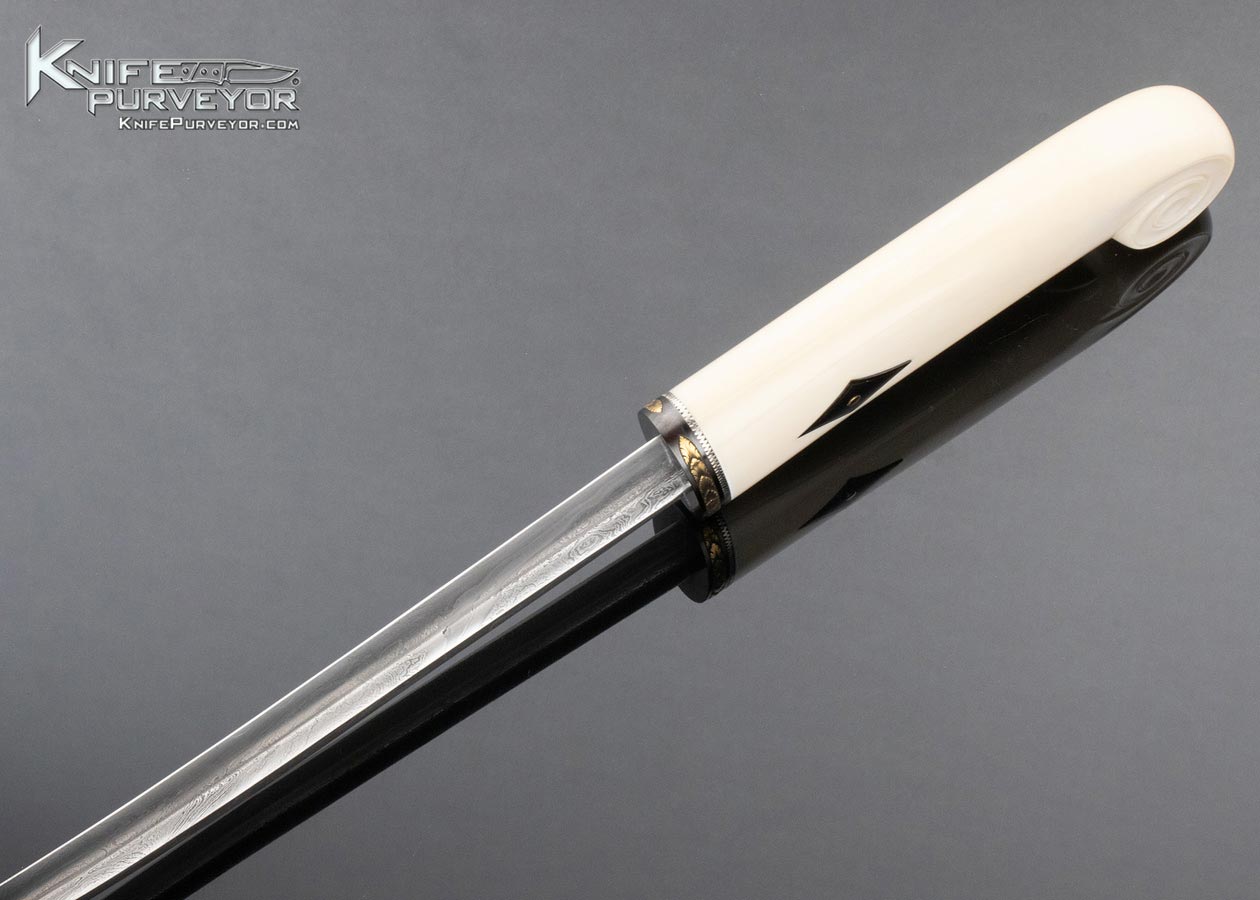Al Pendray Custom Knife Damascus Carved Mammoth Engraved by Mark Waldrop