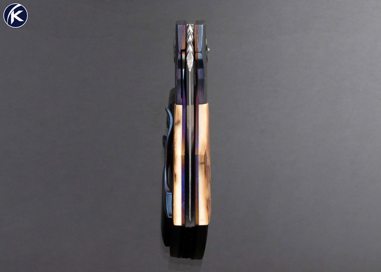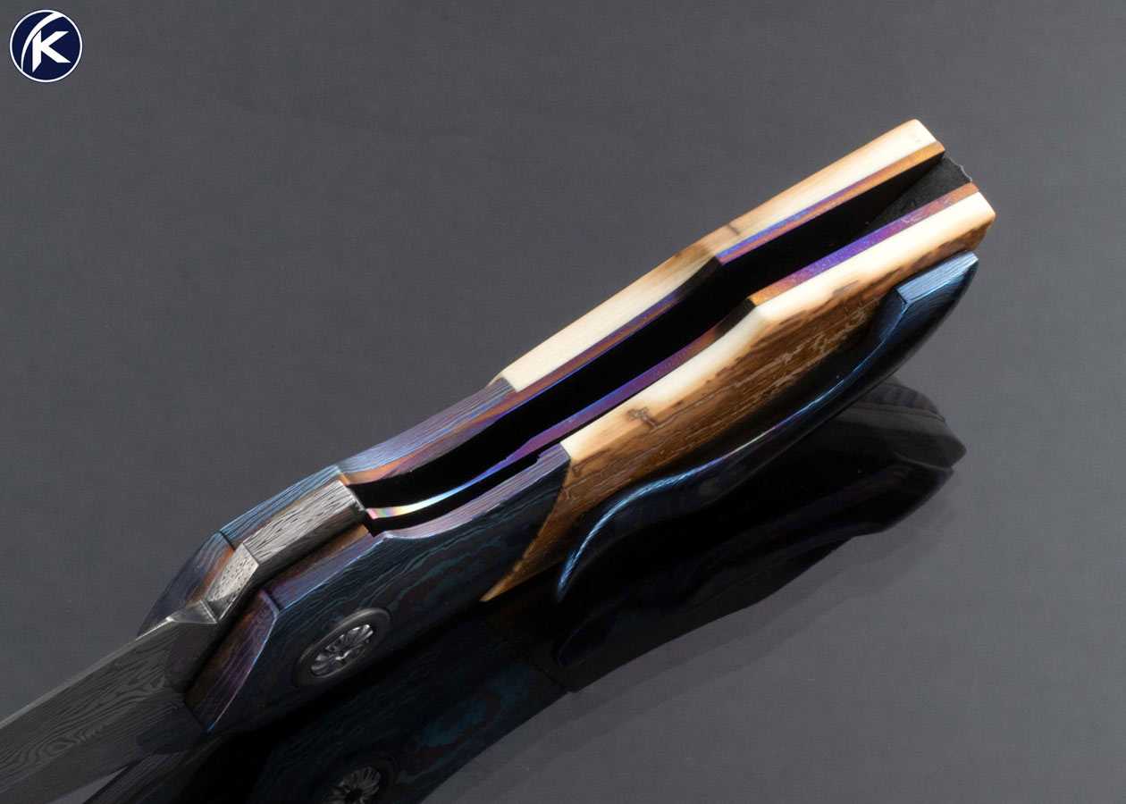 Alistair Bastian Custom Knife Mammoth and Damascus Timascus Linerlock Flipper