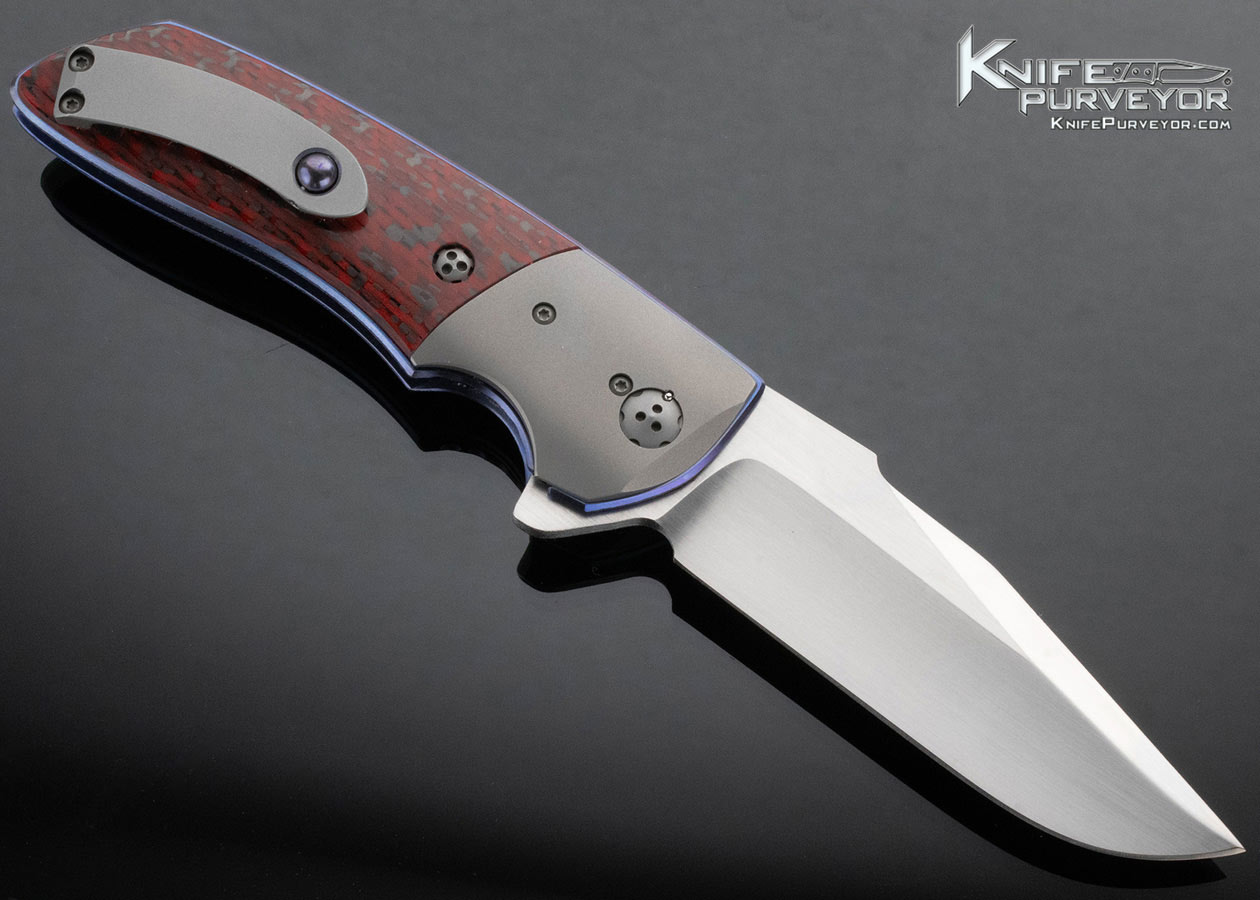 Allen Elishewitz Custom Knife Red and Black Carbon Fiber Linerlock Flipper