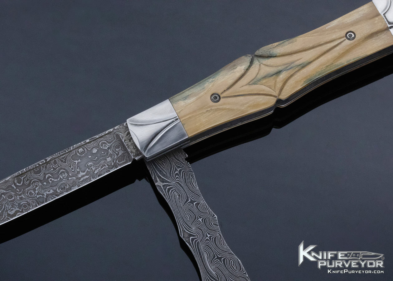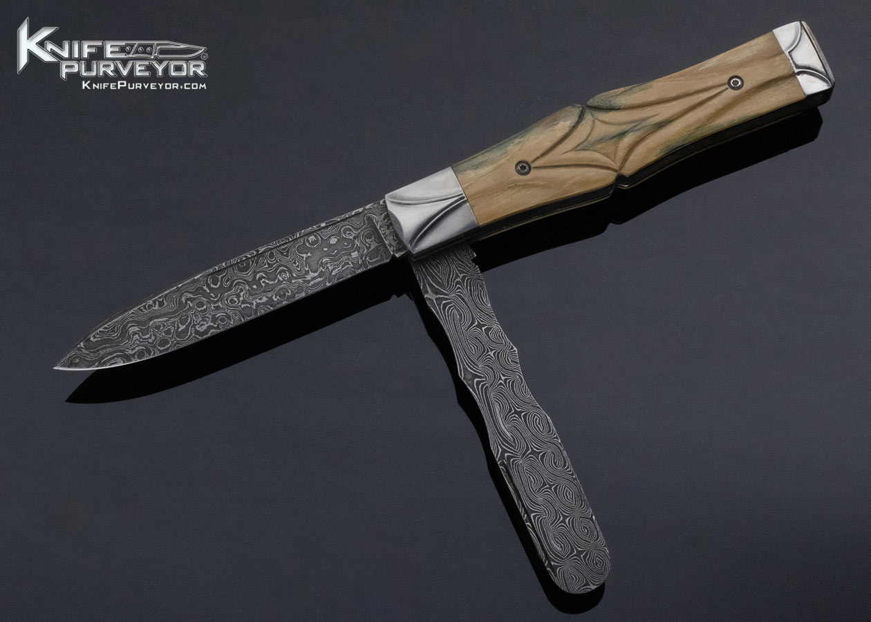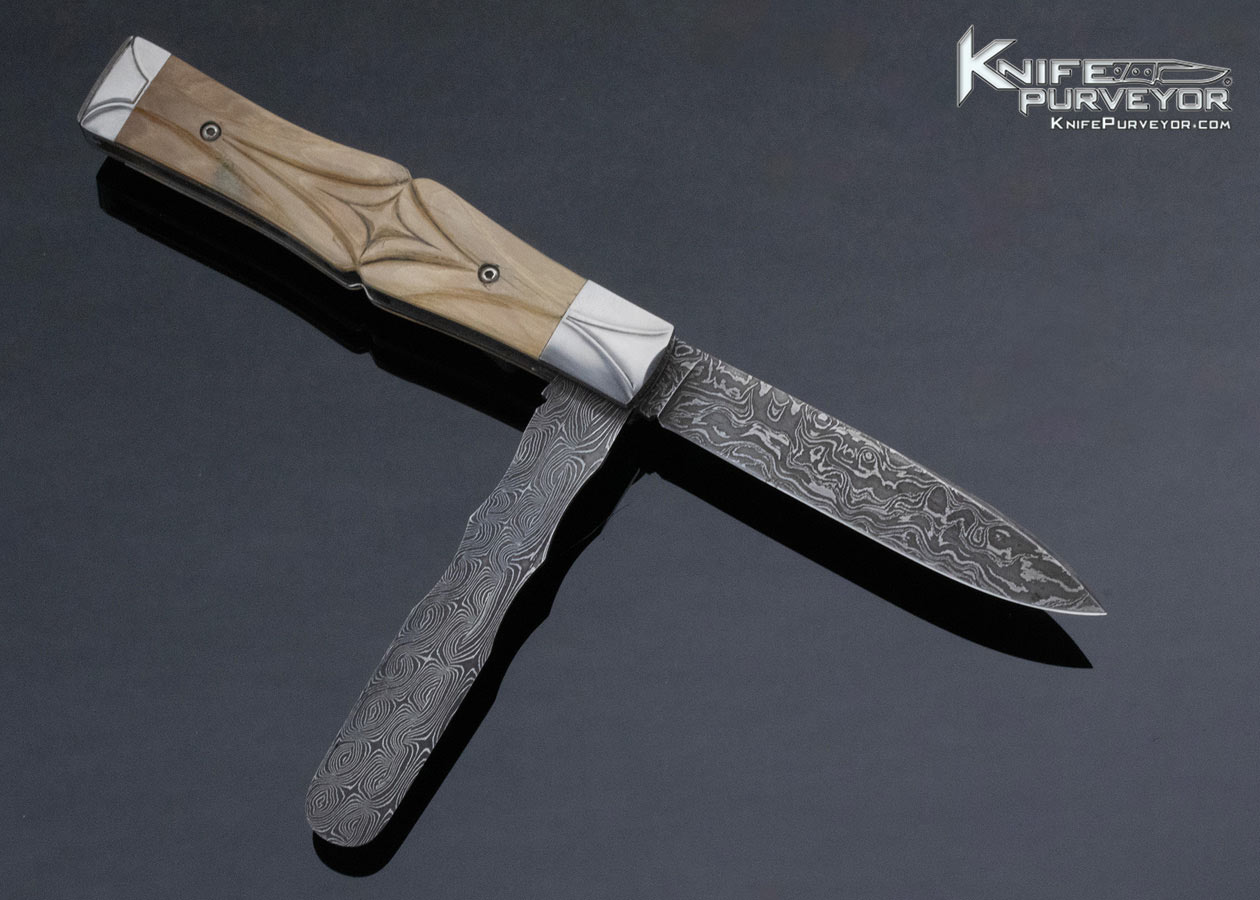 Bailey Bradshaw Custom Knife Mastersmith Fluted Mammoth & Sole Authorship Damascus 2 Blade Dr’s Knife Slipjoint