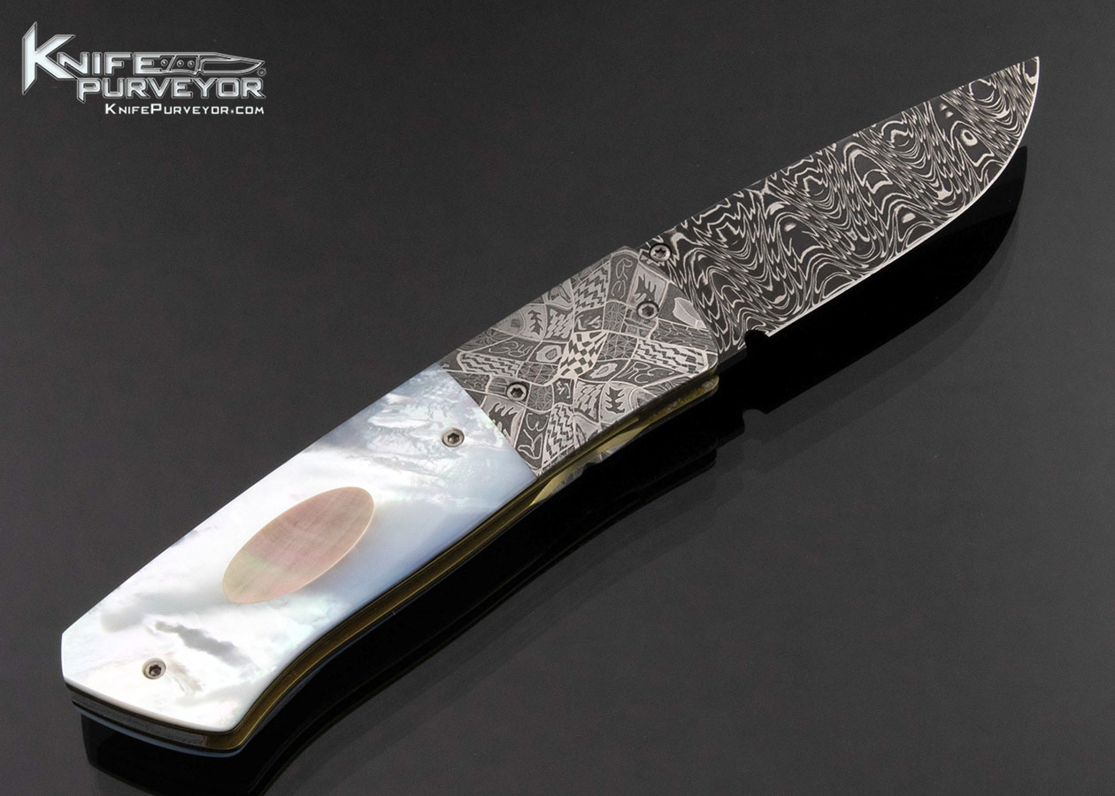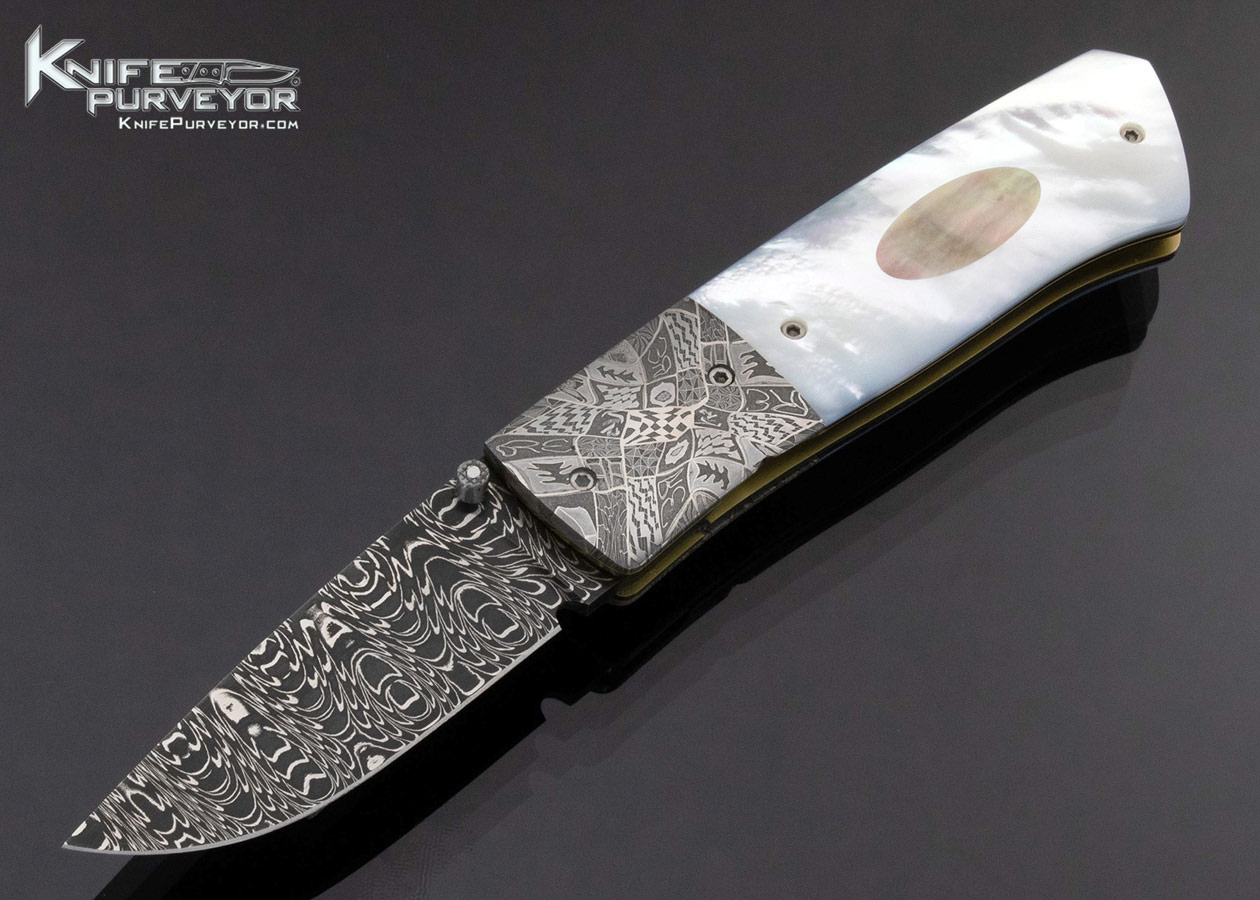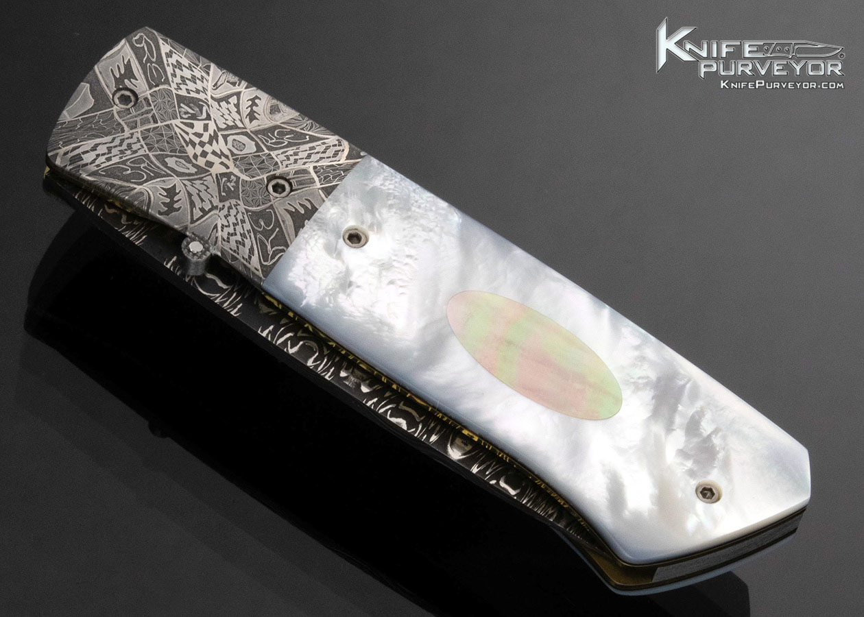 Bill Ankrom Custom Knife Robert Eggerling Mosaic Damascus and Multi Pearl Linerlock