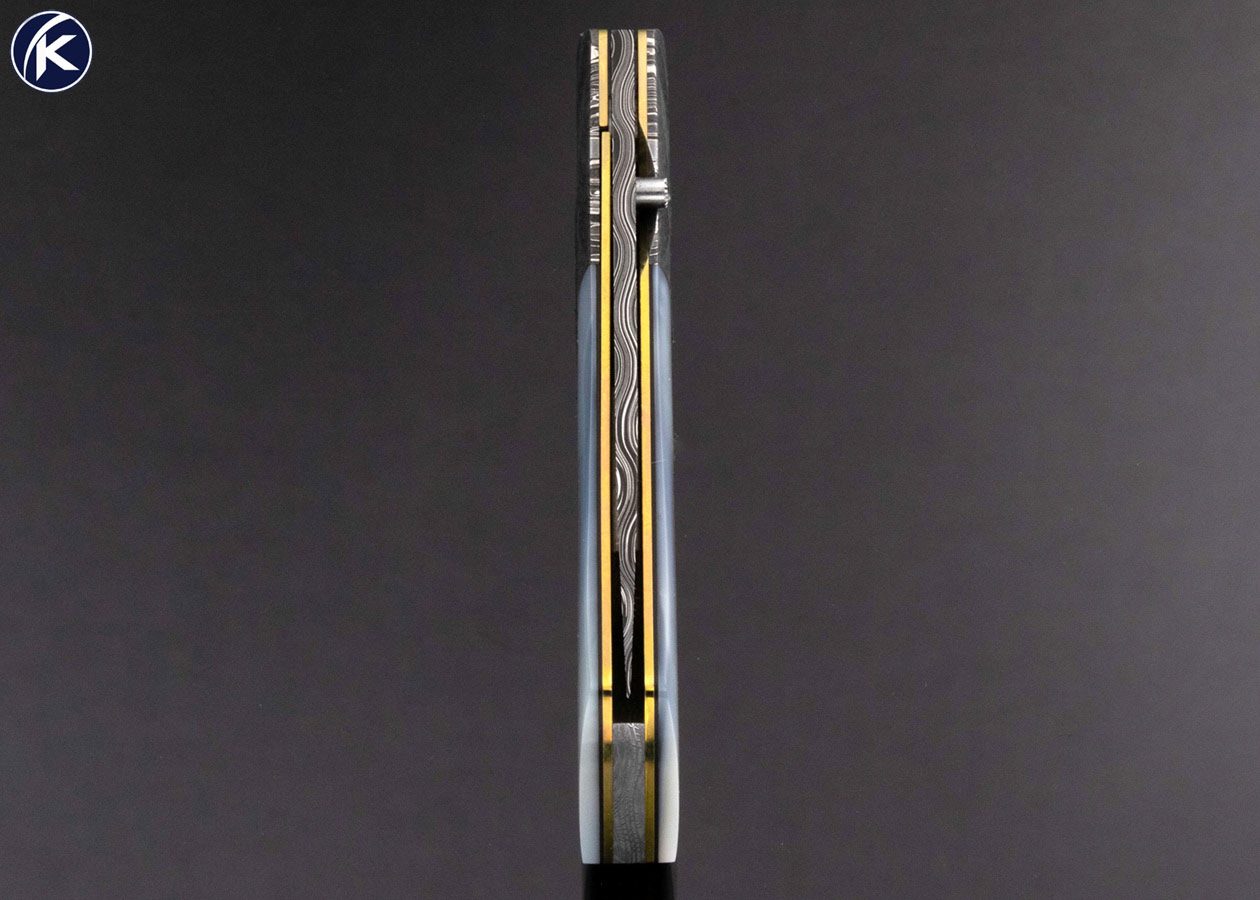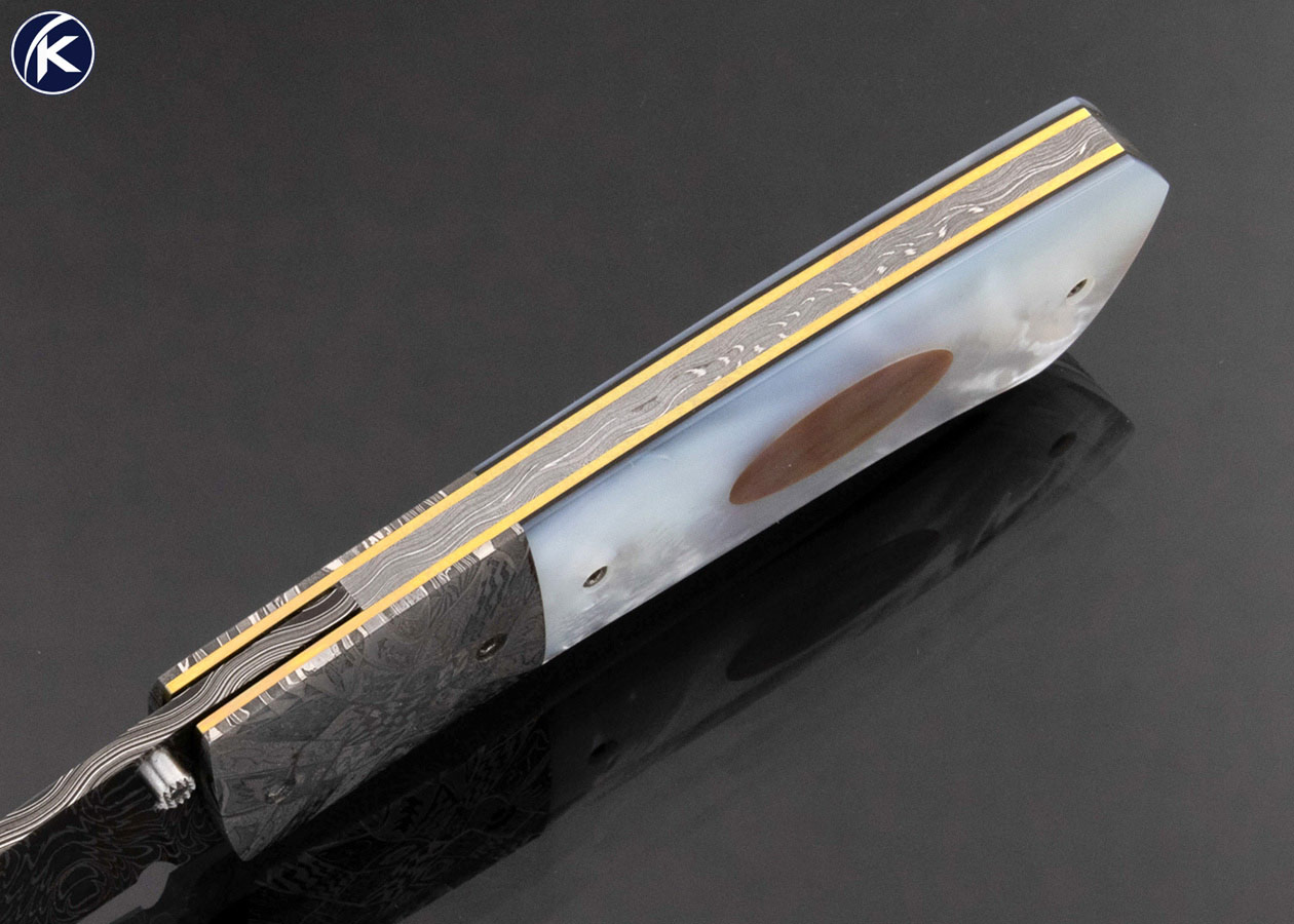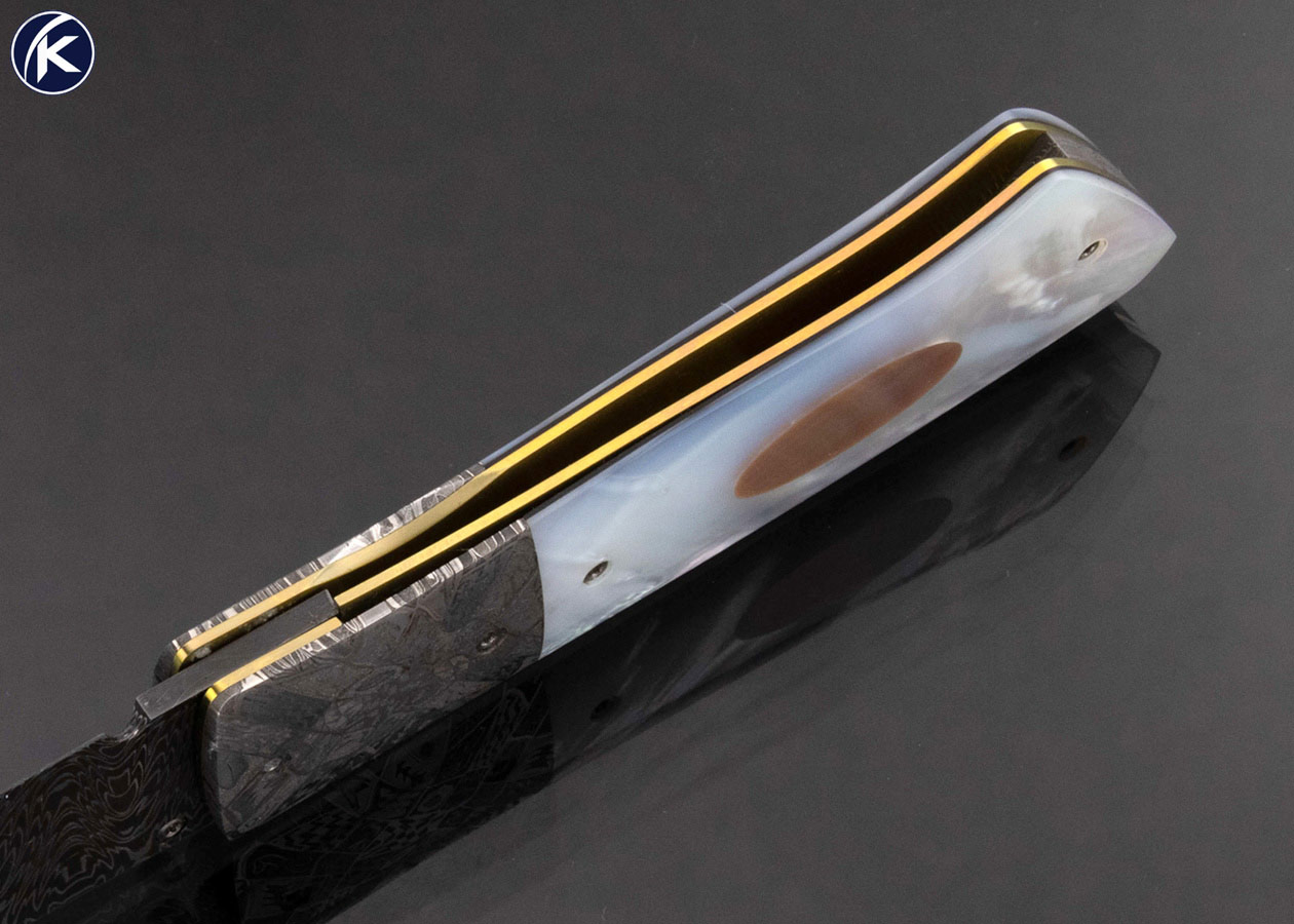 Bill Ankrom Custom Knife Robert Eggerling Mosaic Damascus and Multi Pearl Linerlock