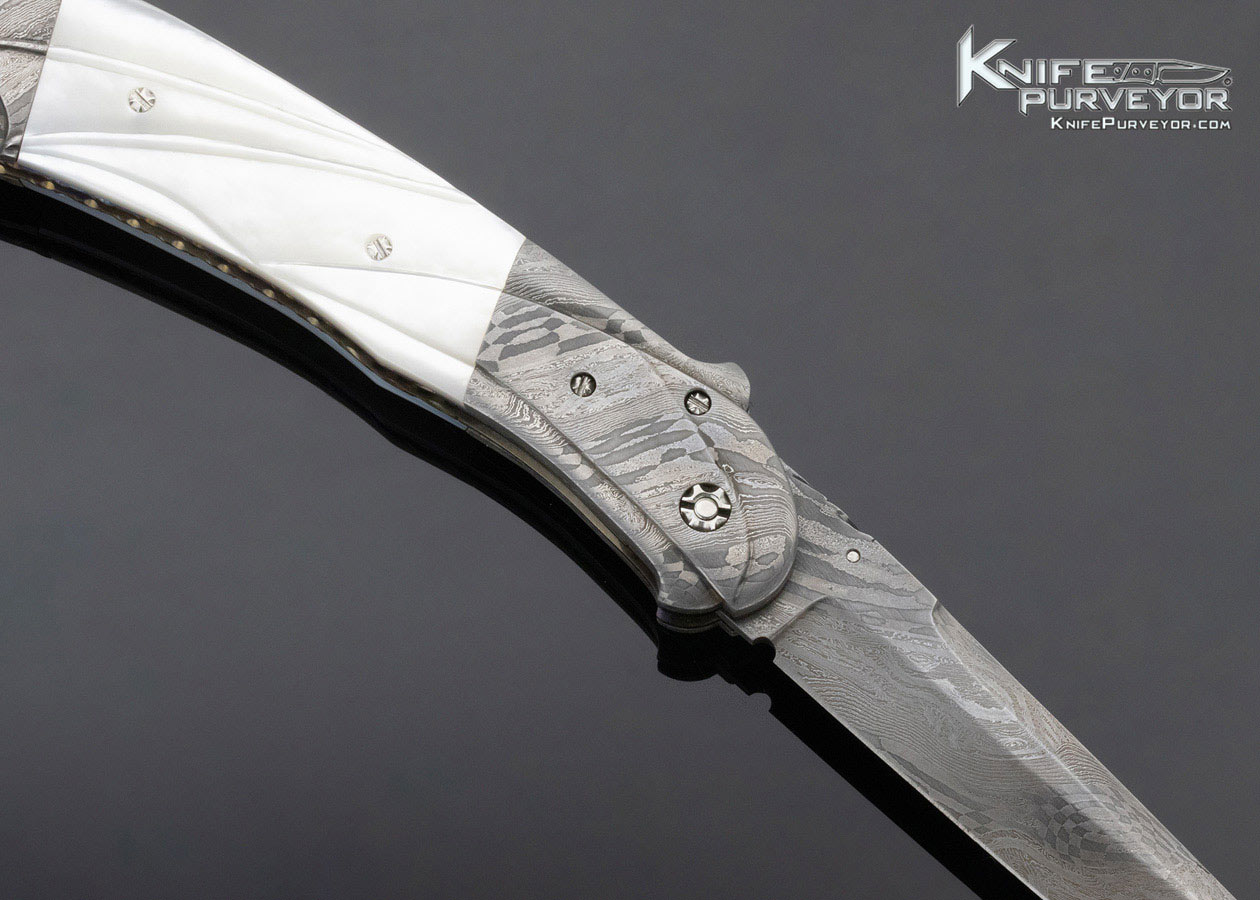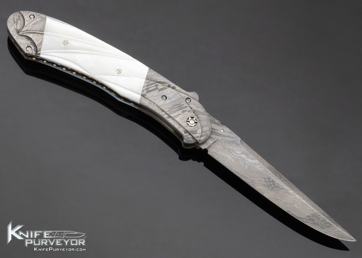 Bill Saindon Custom Knife Mother of Pearl and Damascus Linerlock