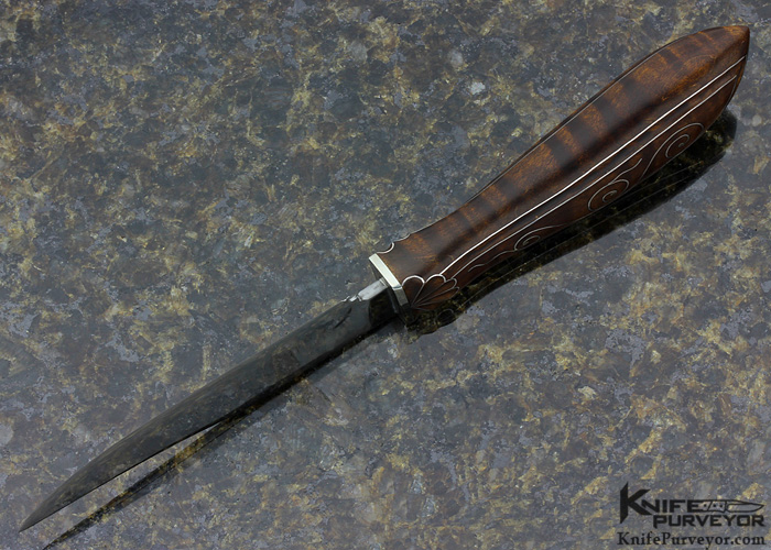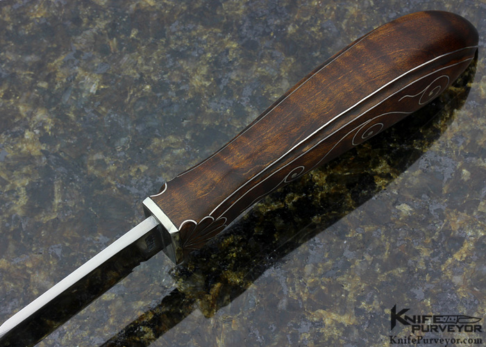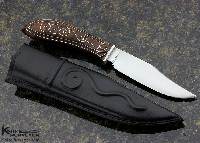 Bill Moran Custom Knife Fine Silver Wire Inlaid Tiger Striped Maple Puuko Styled Hunter with Deluxe Sheath