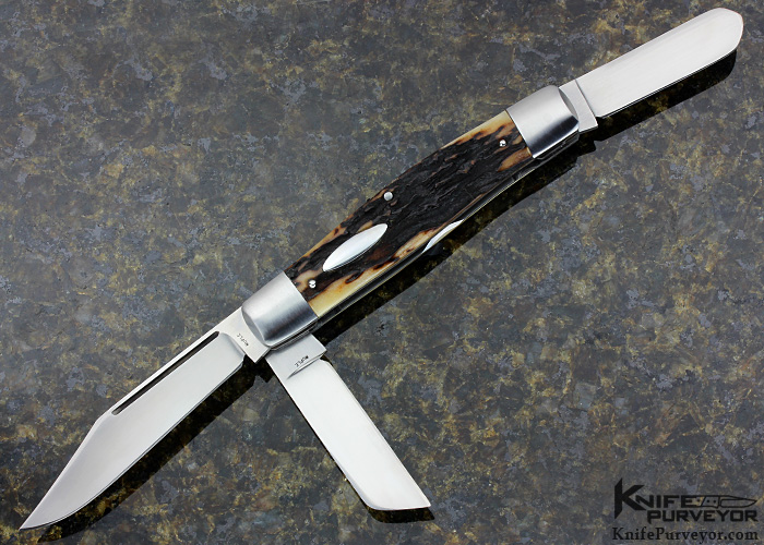 Bill Ruple Custom Knife 3 Blade Stockman, Stag with Oval Escutcheon