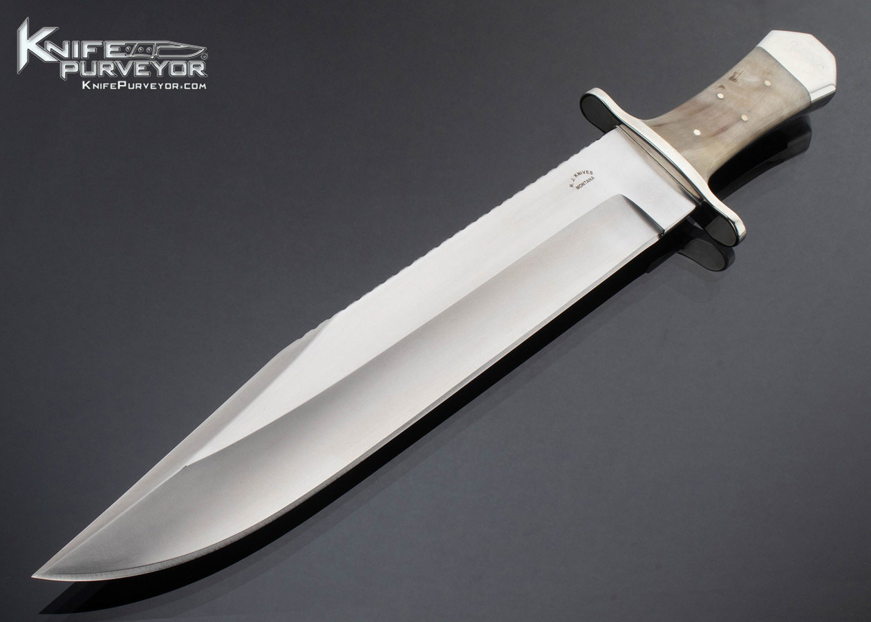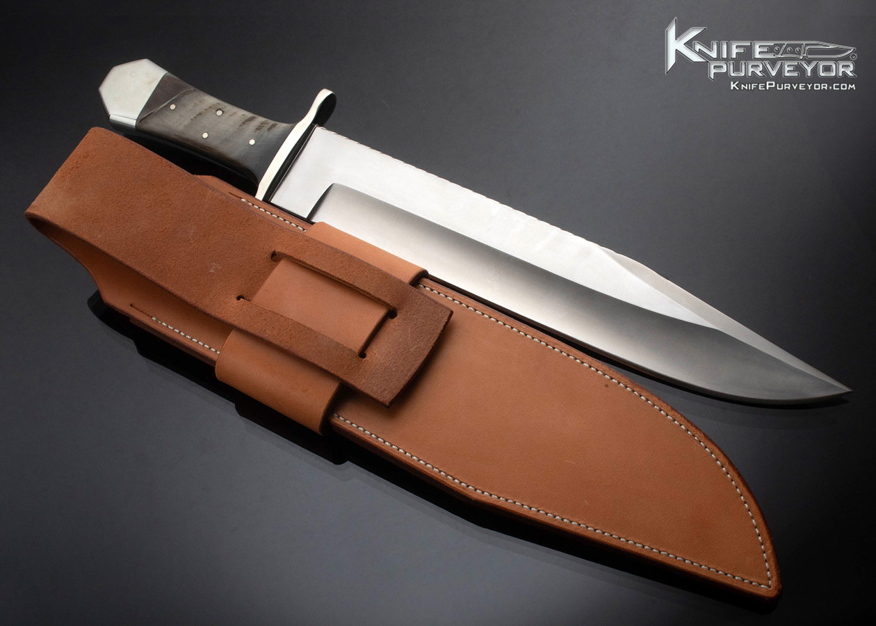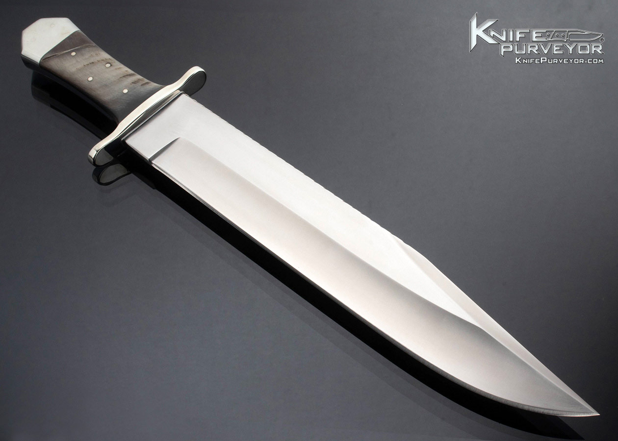 Bob and Josh Jolley Custom Knife Coffin Bowie w Big Horn Sheep Nickel Silver Guard and End Cap