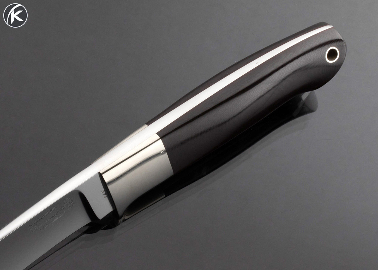 Bob Loveless Custom Knife Double Nude Logo Extended Bolster Micarta Drop Point Hunter CPM-154 with Original Leather Sheath