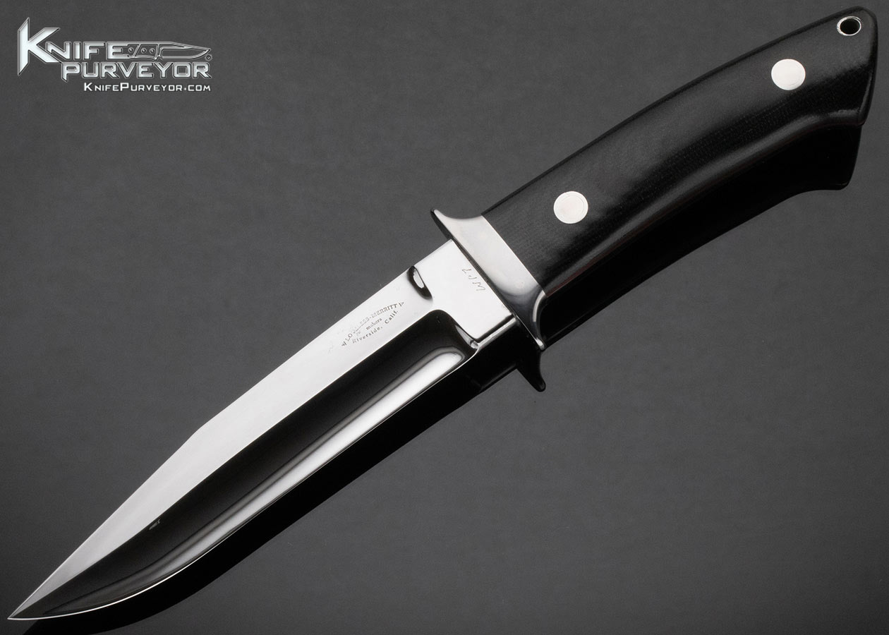 Bob Loveless Custom Knife Micarta Wilderness LJM “Loveless Jim Merritt” Signed Riverside Football Logo with Loveless Hand Signed Sheath