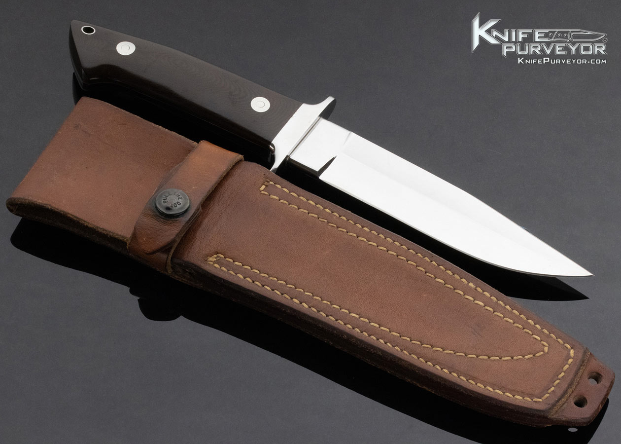Bob Loveless Custom Knife Riverside Football Logo 6″ Black Micarta Wilderness 1065