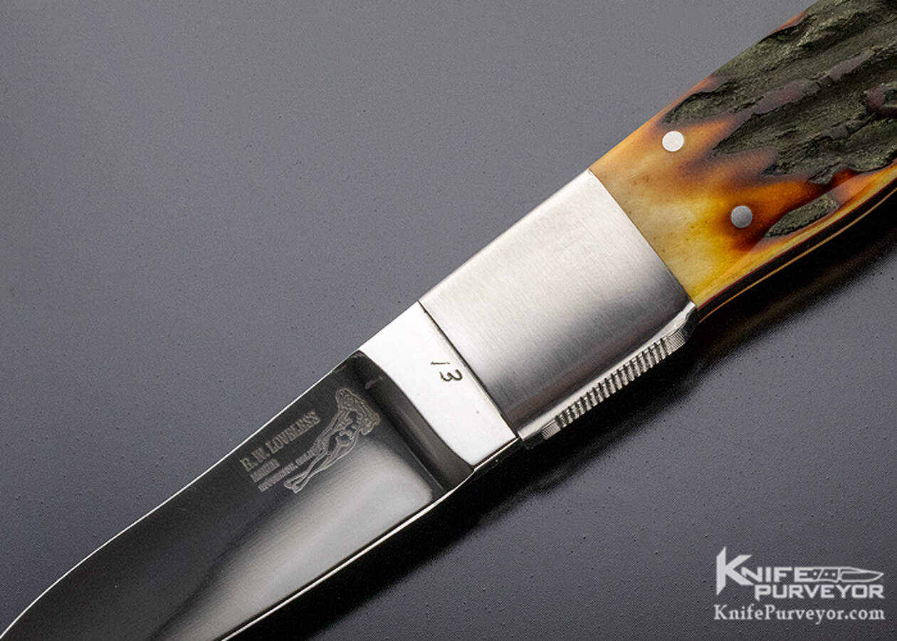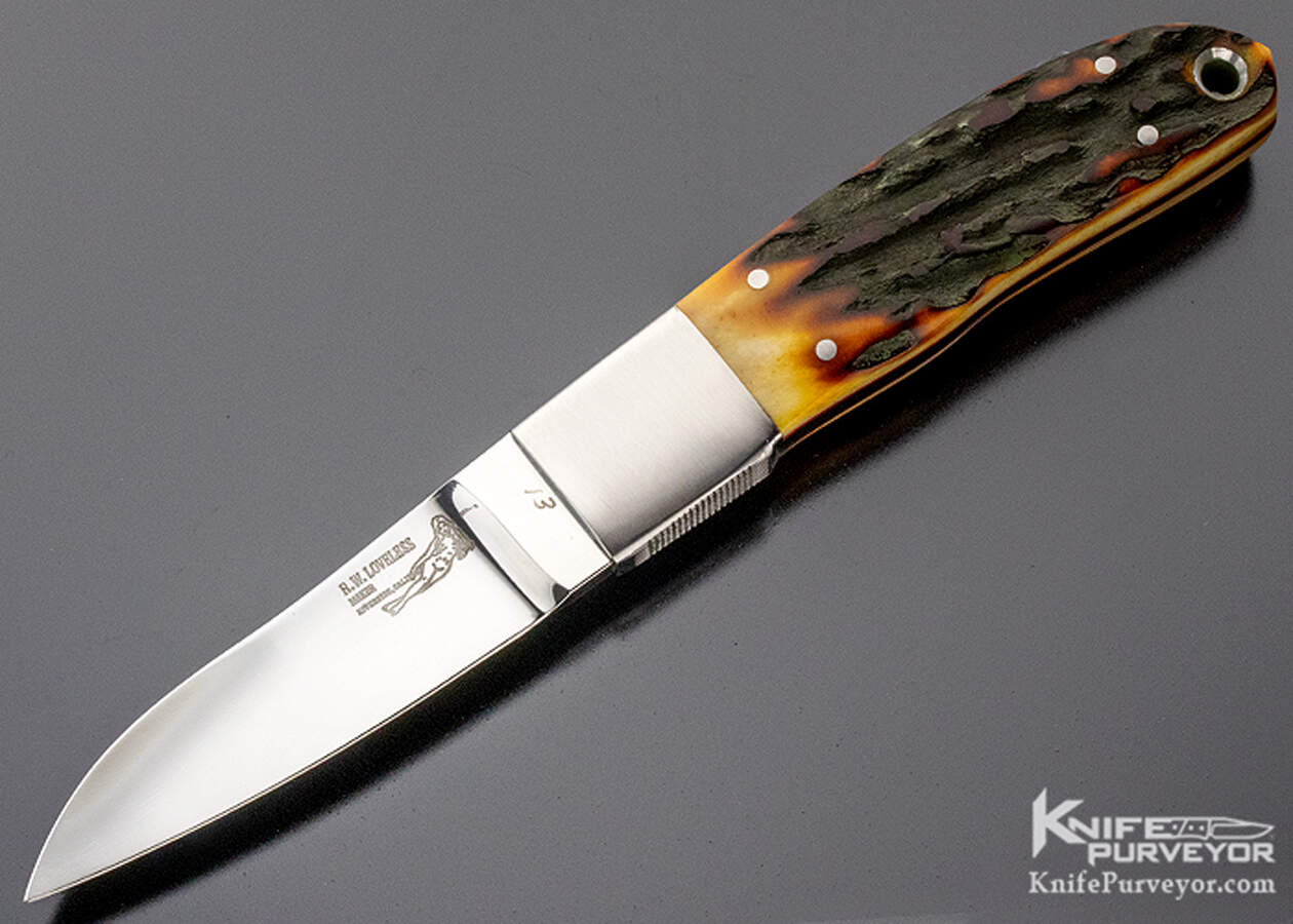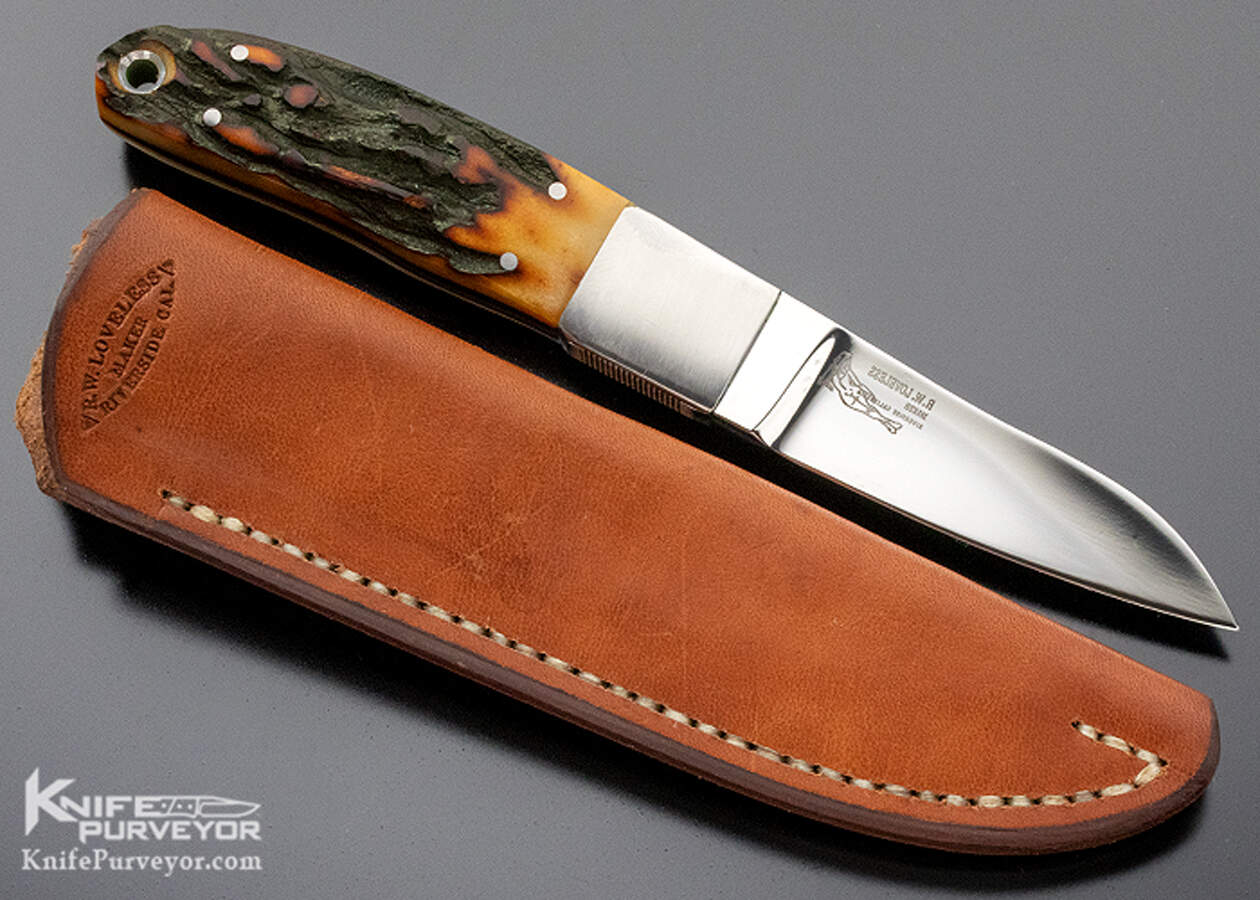Bob Loveless Custom Knife Double Nude Logo Amber Stag Crooked Skinner Stiff Horn 1 of 2 Ever Made