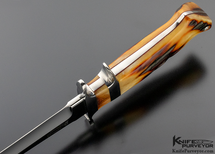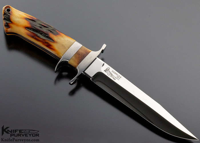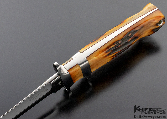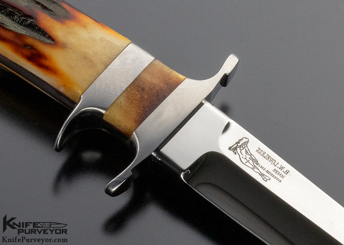 Bob Loveless Custom Knife #461 Double Nude Logo Amber Stag “Junior Bear” Subhilt Fighter with Hand Signed Sheath