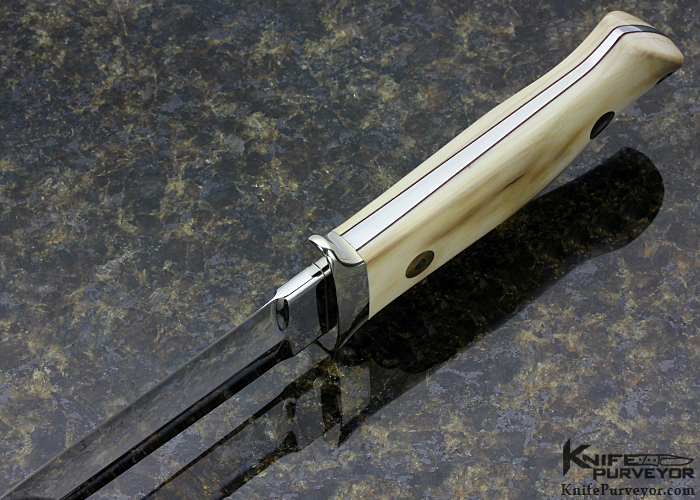 Incredibly Well Balanced. This Fighter from Bob Loveless has Beautiful Grinds and Polish. The Mastodon Ivory was supplied to Bob Loveless by JW Denton in the late 1980's to make fighters and Subhilt fighters. The Scales are Very Smooth and Warm in the hand. Here is a Great Opportunity to own one of the Best Riverside Fighters we have seen.