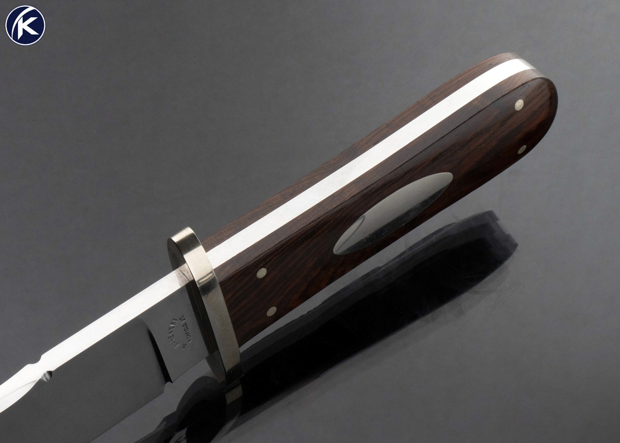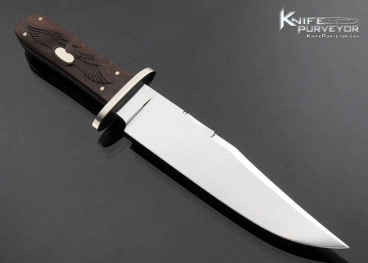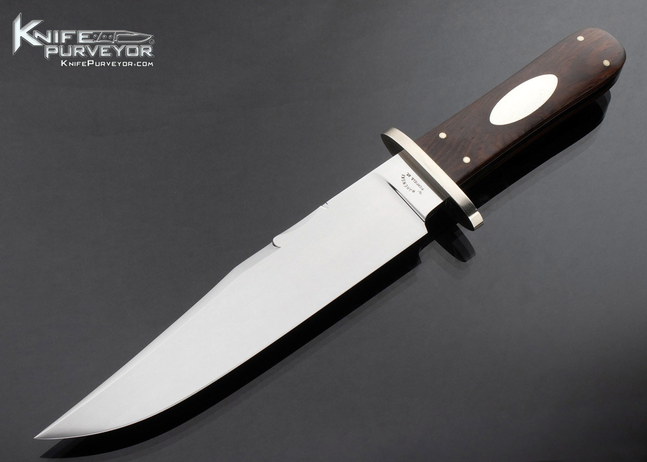 Buster Warenski Custom Knife Carved Rosewood and Nickel Silver Guard with Wood and Metal Scabbard