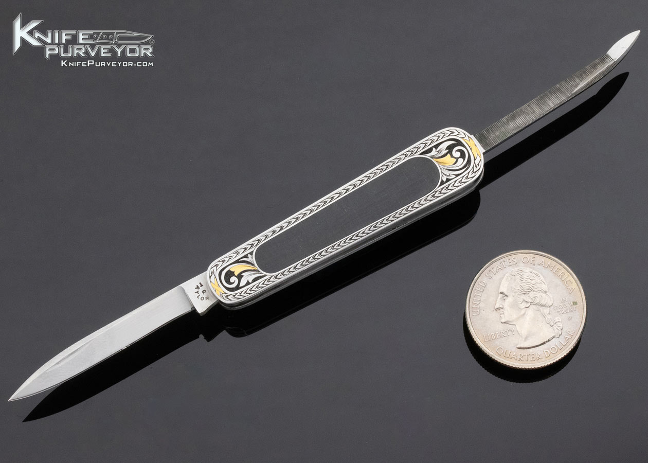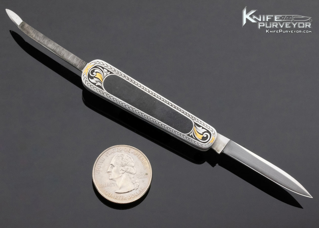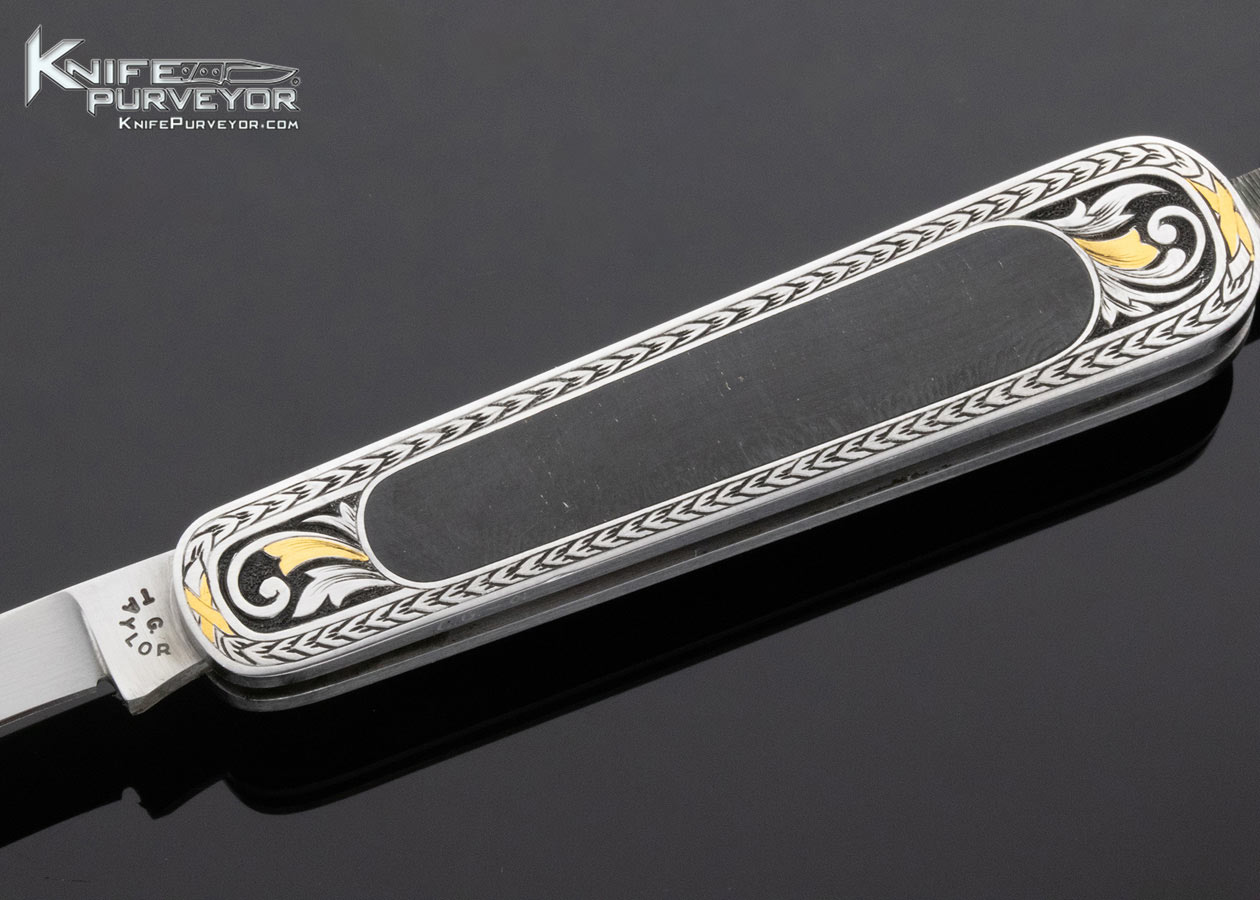 C. Gray Taylor Custom Knife Black Jade Interframe Slipjoint Engraved by Christy George with 24 Kt Gold Inlay