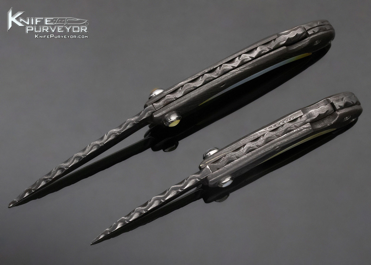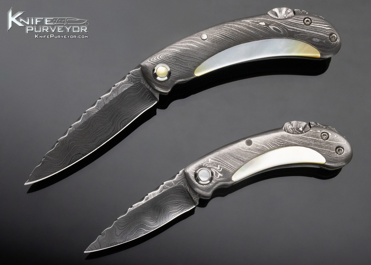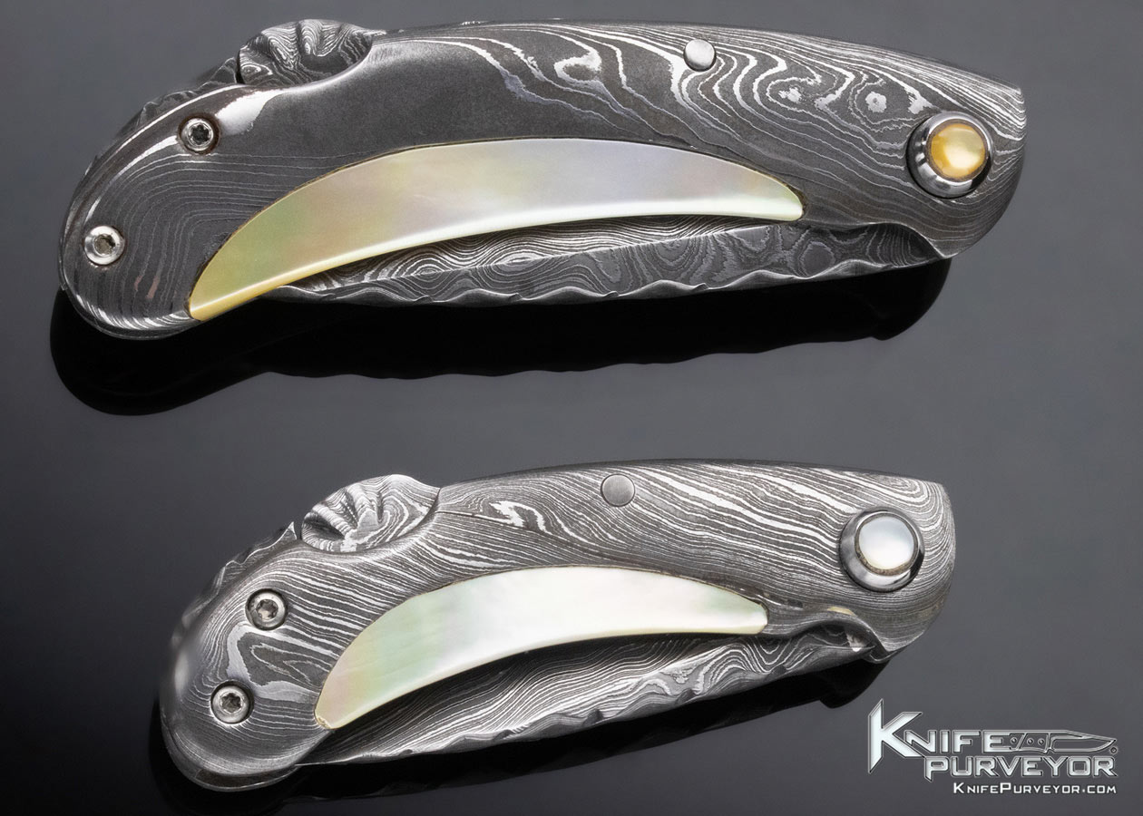 Charles Kain Custom Knife Random Pattern Damascus Scalloped King Prawn and Mini Prawn Gentleman’s Folders Prawns Set Top Lock