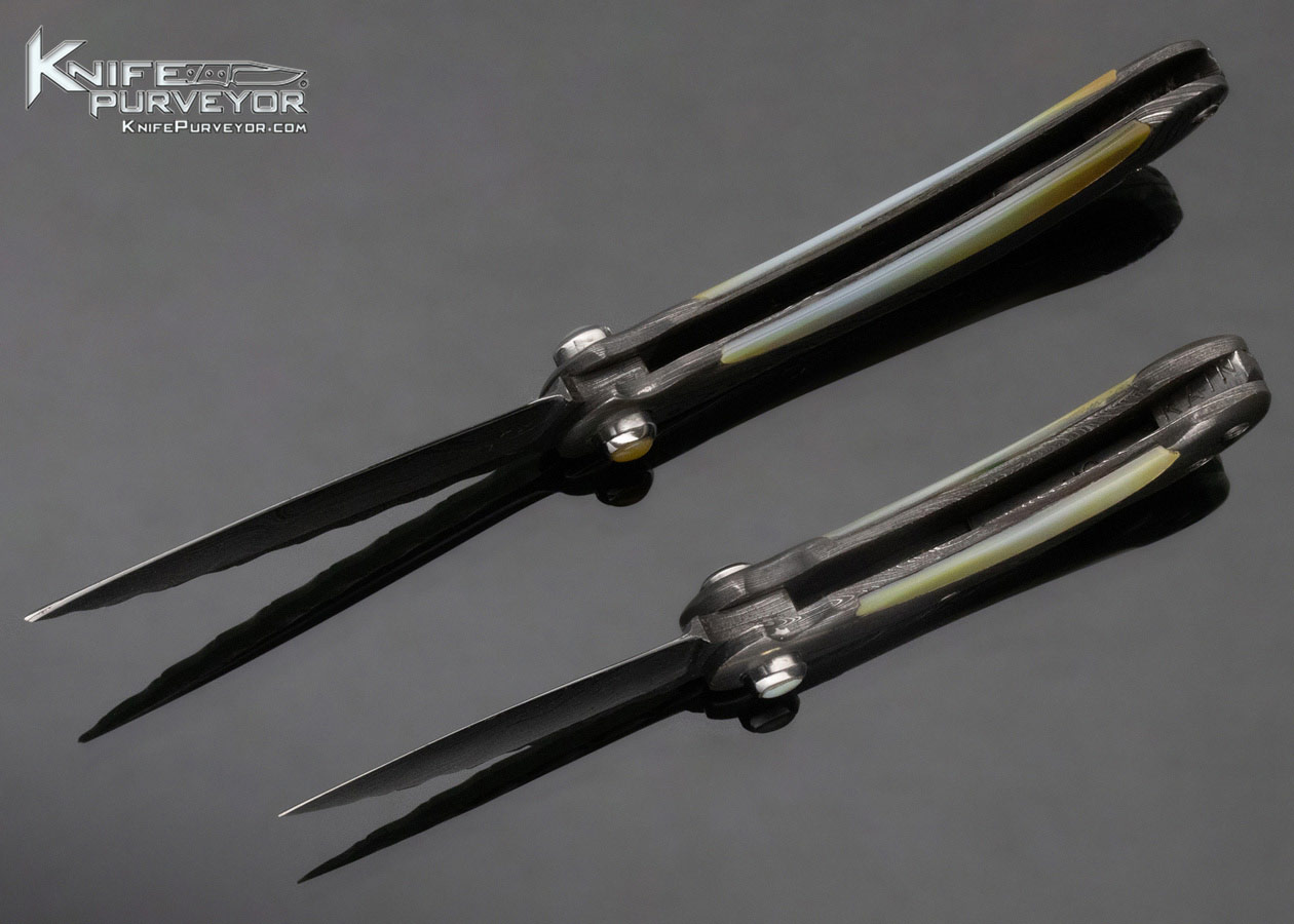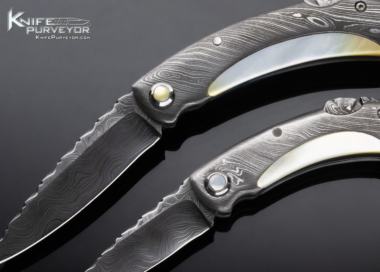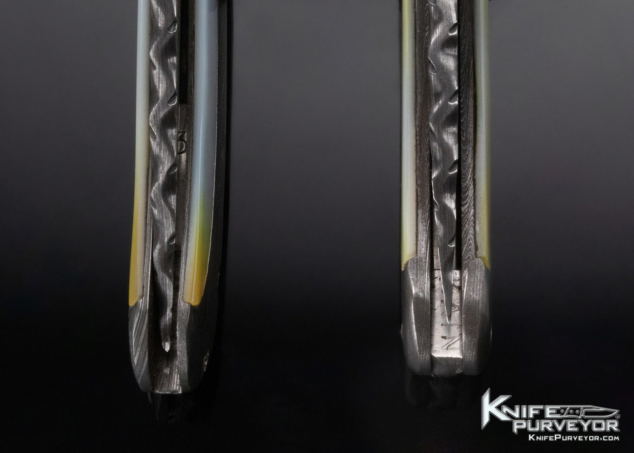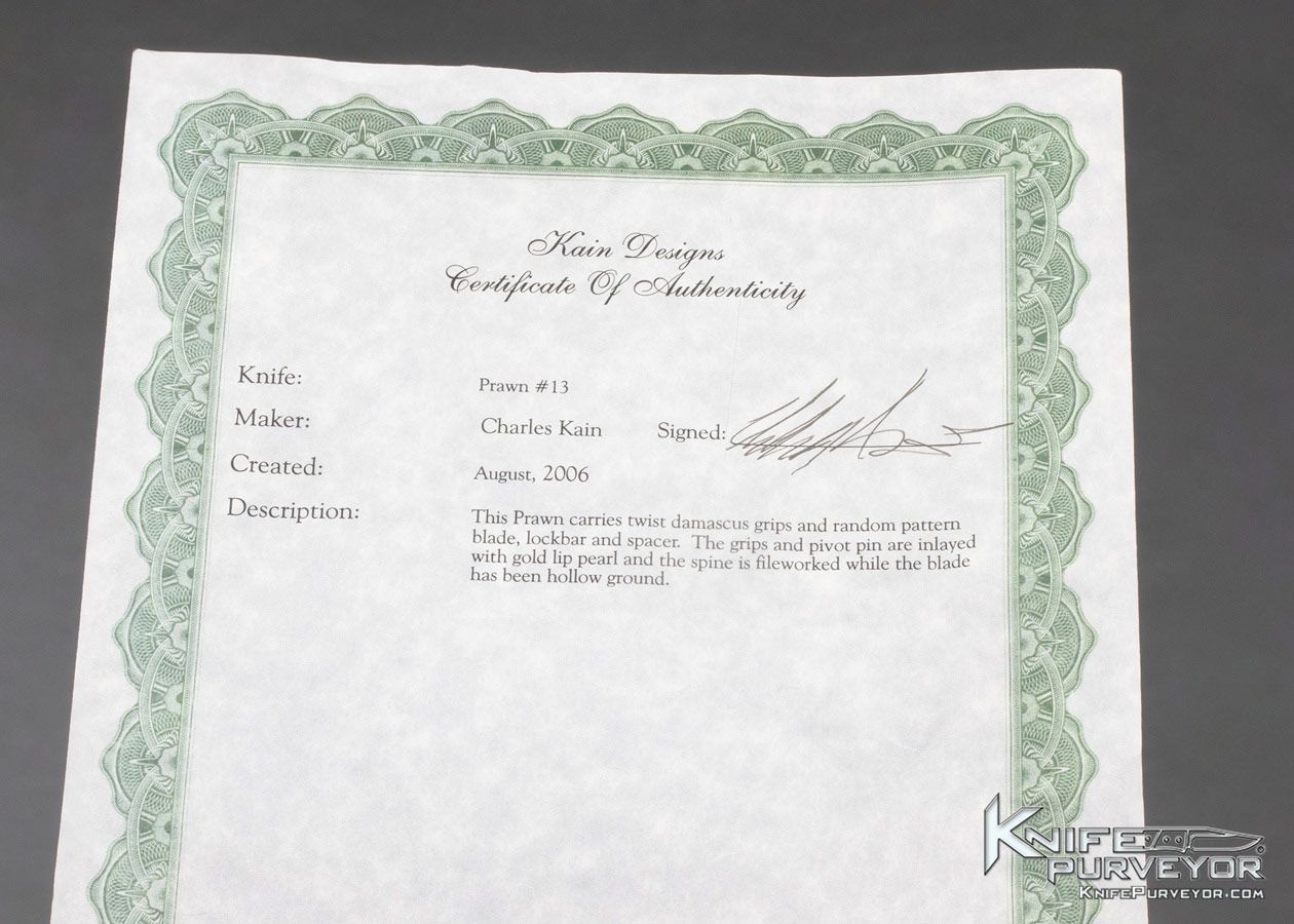 Charles Kain Custom Knife Random Pattern Damascus Scalloped King Prawn and Mini Prawn Gentleman’s Folders Prawns Set Top Lock