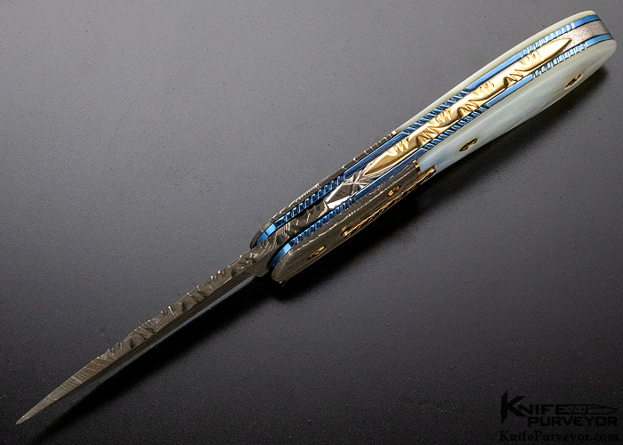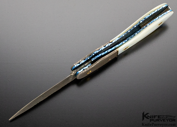 Dale Reif Custom Knife Damascus, Titanium and Mother of Pearl Auto Linerlock