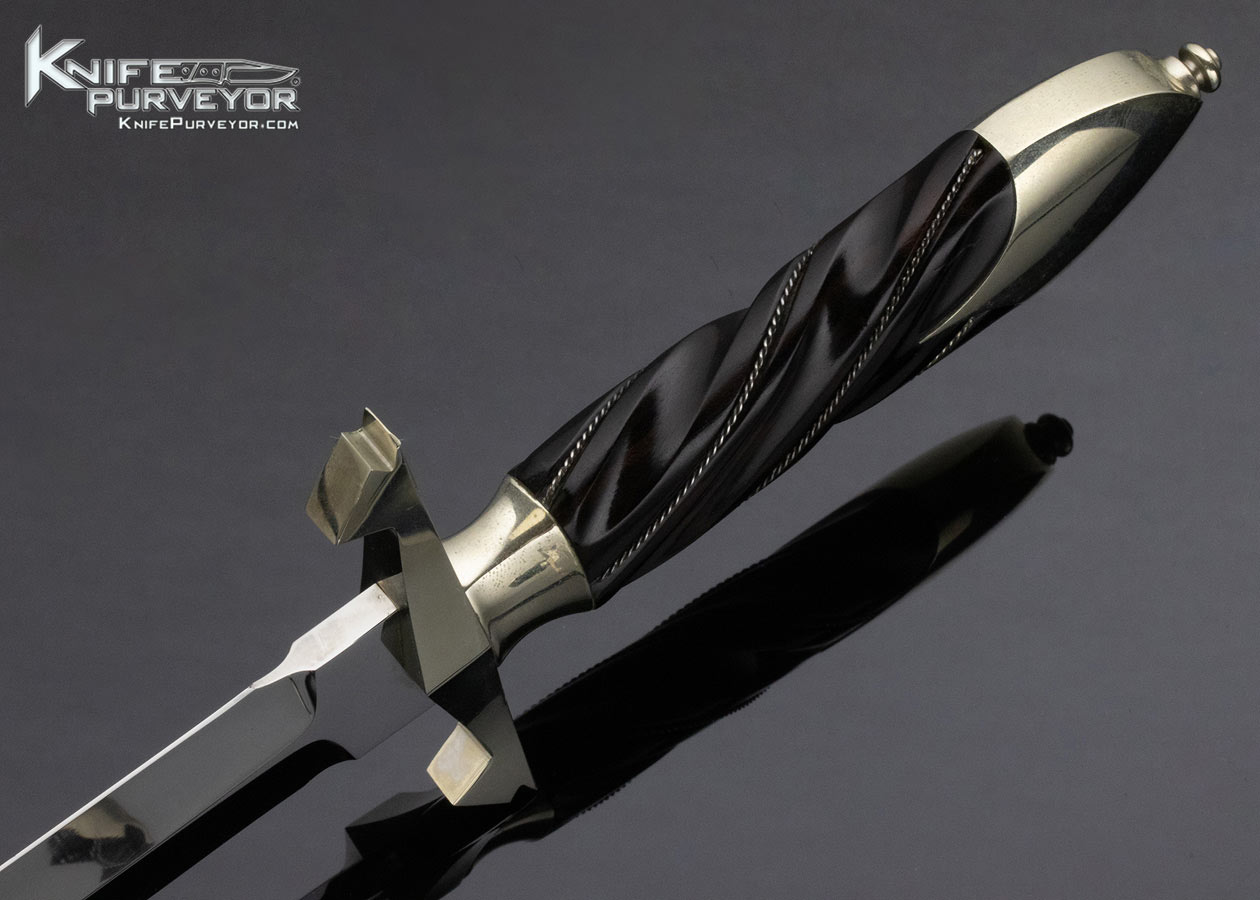 Dan Dagget Custom Knife Fluted Desert Ironwood Dagger with Nickel Silver Throat and Leather Sheath