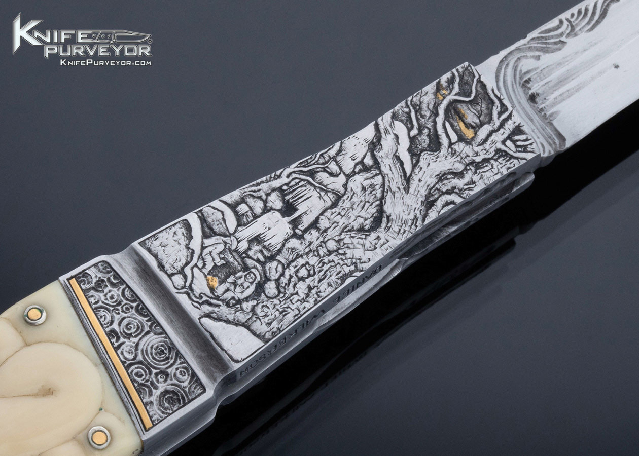 Dan Wilkerson Custom Knife Sole Authorship Carved Mammoth Slip Joint with Half Stop