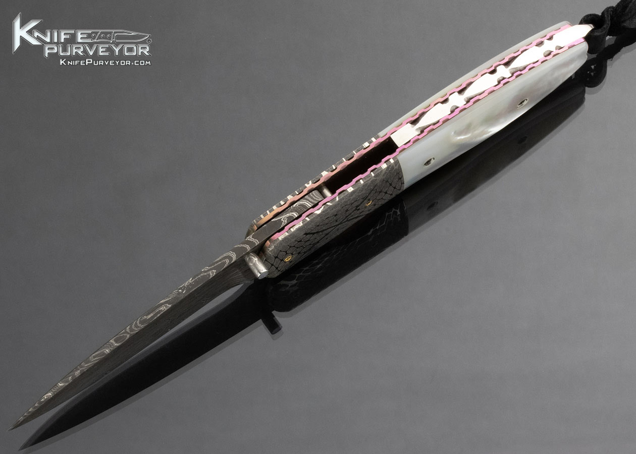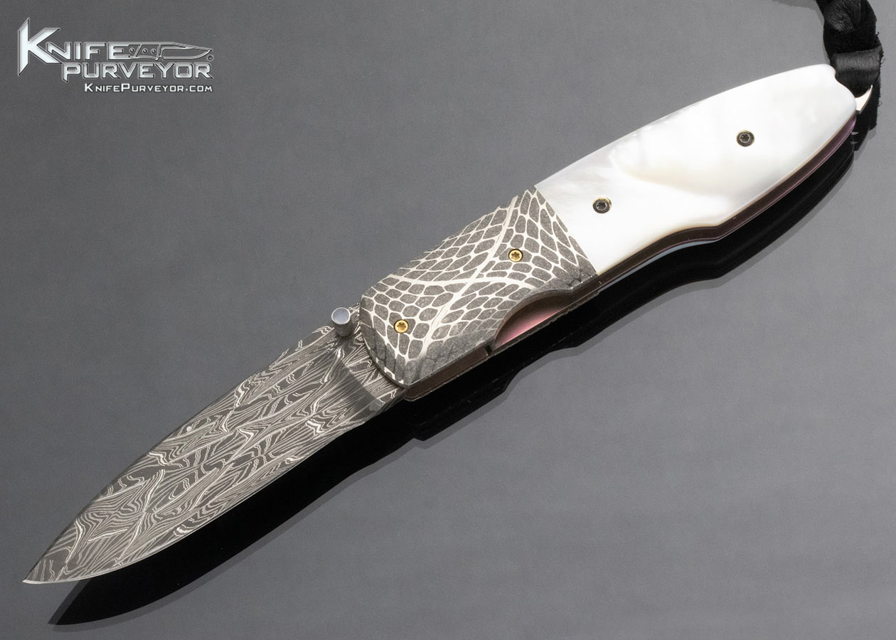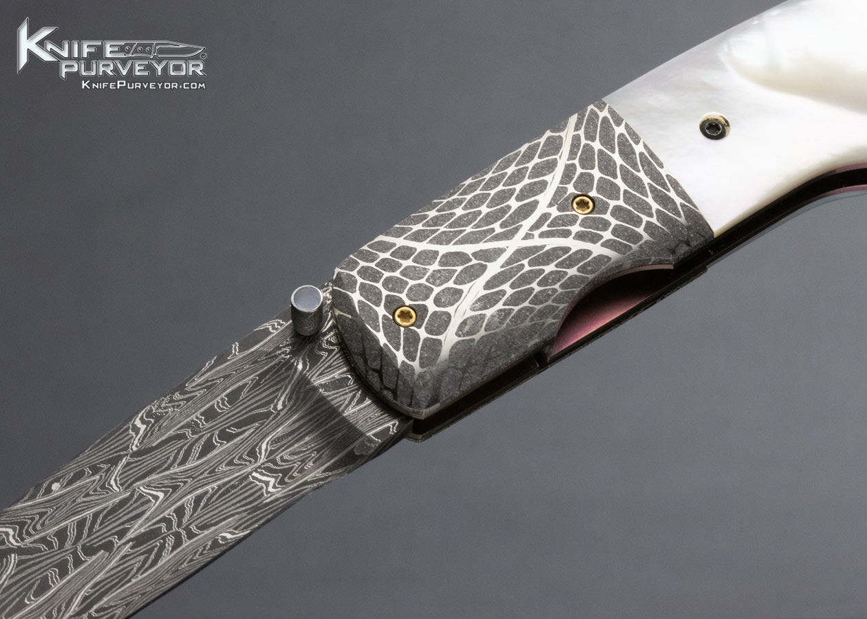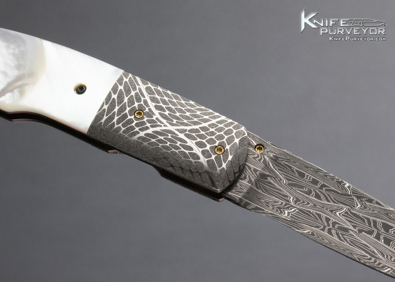 Dave Ricke Custom Knife Pearl and Damascus Linerlock