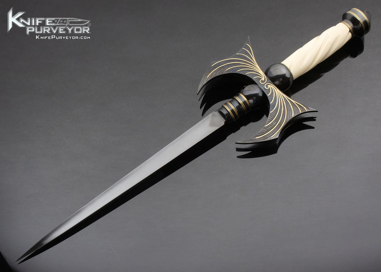 Dianna Casteel Custom Knife Fluted Mammoth and Blued Steel Tri-Edged Dagger with 24 Kt. Gold Inlays Engraved by Jeff Flannery