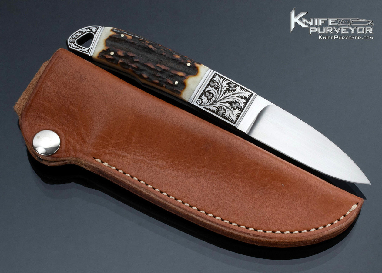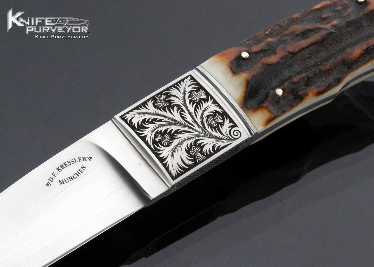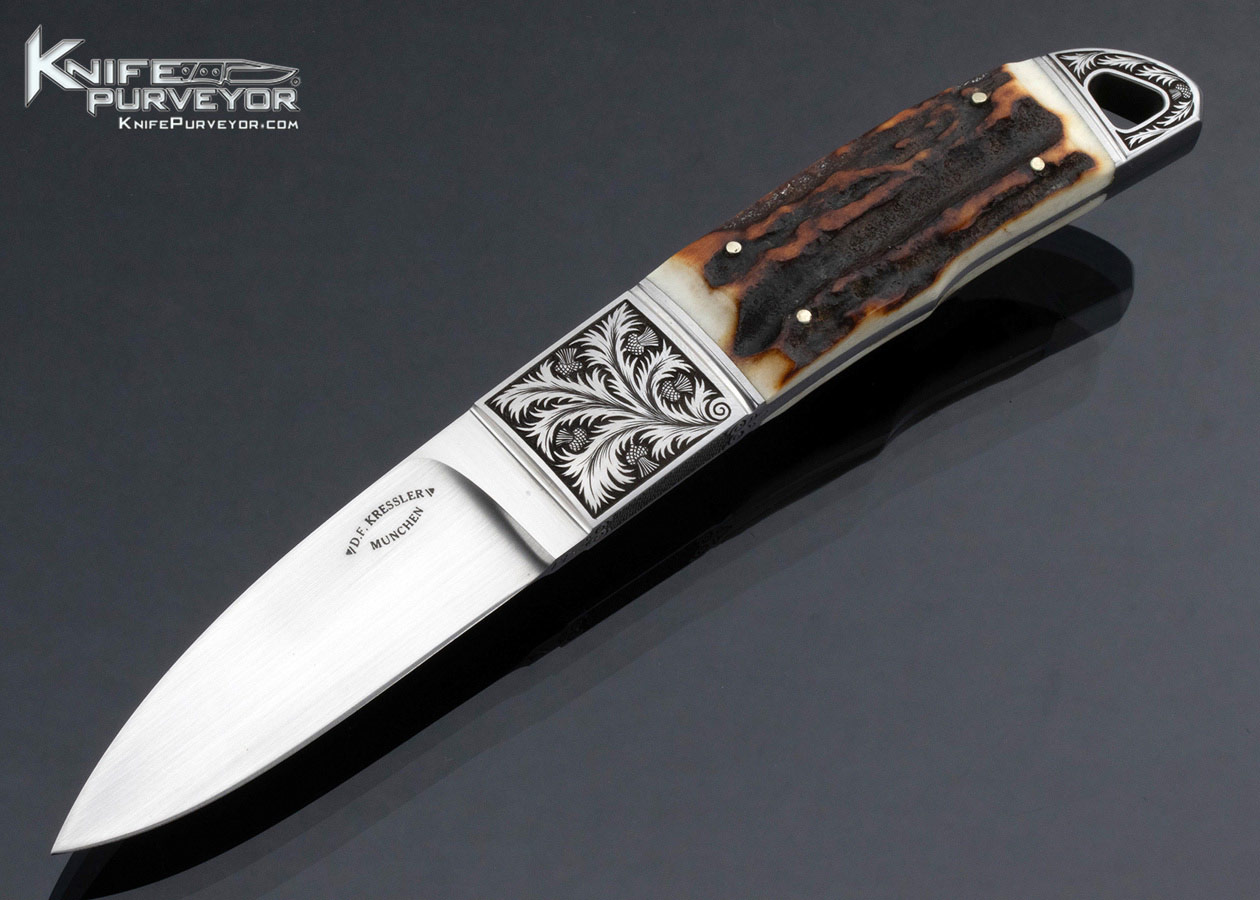 Dietmar Kressler Custom Knife Full Integral Stag Stiffhorn Engraved by Rolf Peters