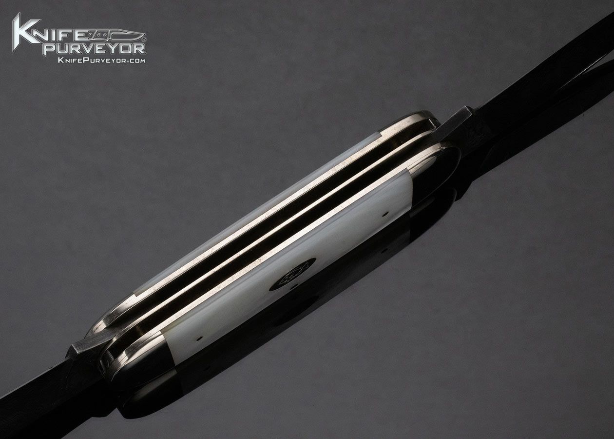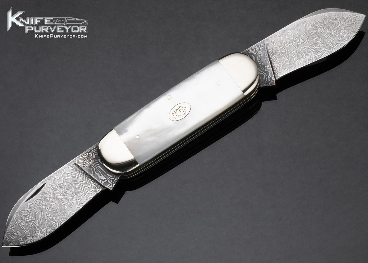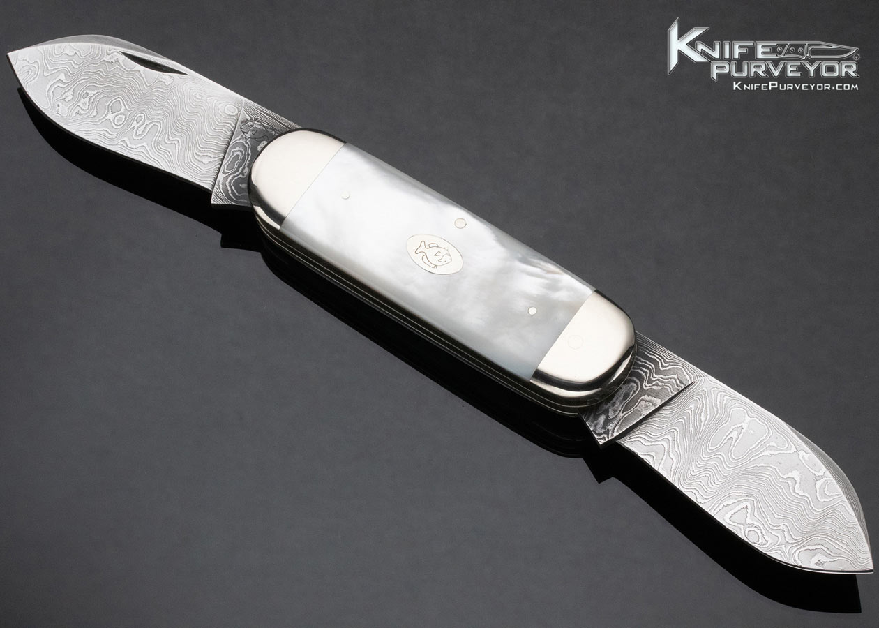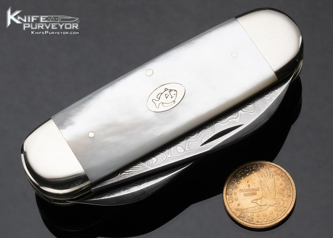 Don Hanson Custom Knife 2 Blade Sole Authorship Damascus Mother of Pearl Sunfish Slipjoint