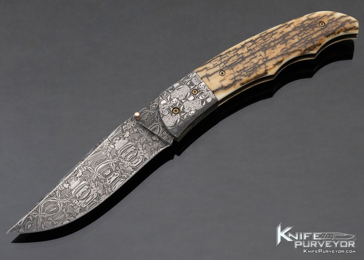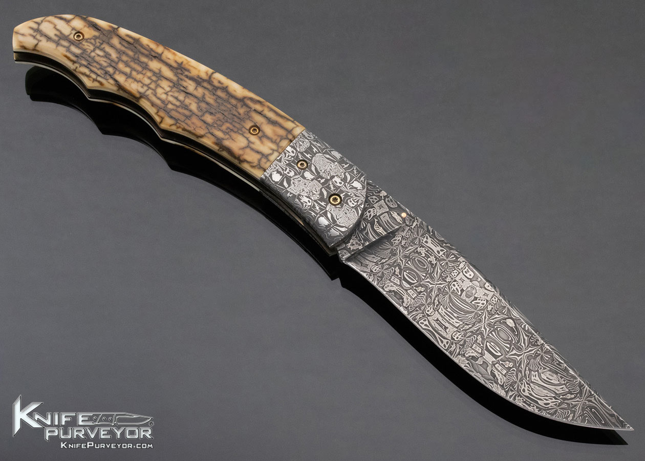 Don Hanson Custom Knife Mammoth and Sole Authorship Damascus Finger Grooved Linerlock