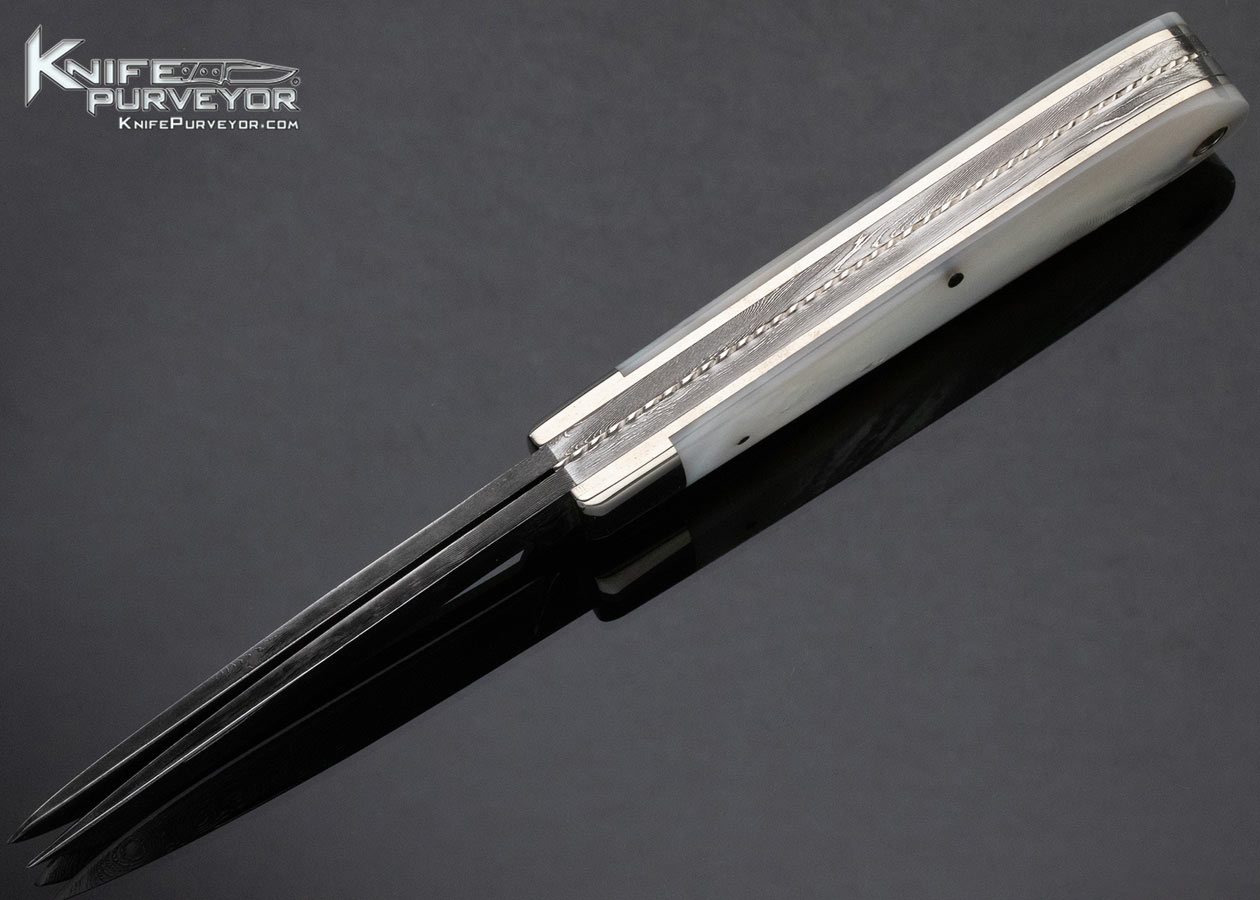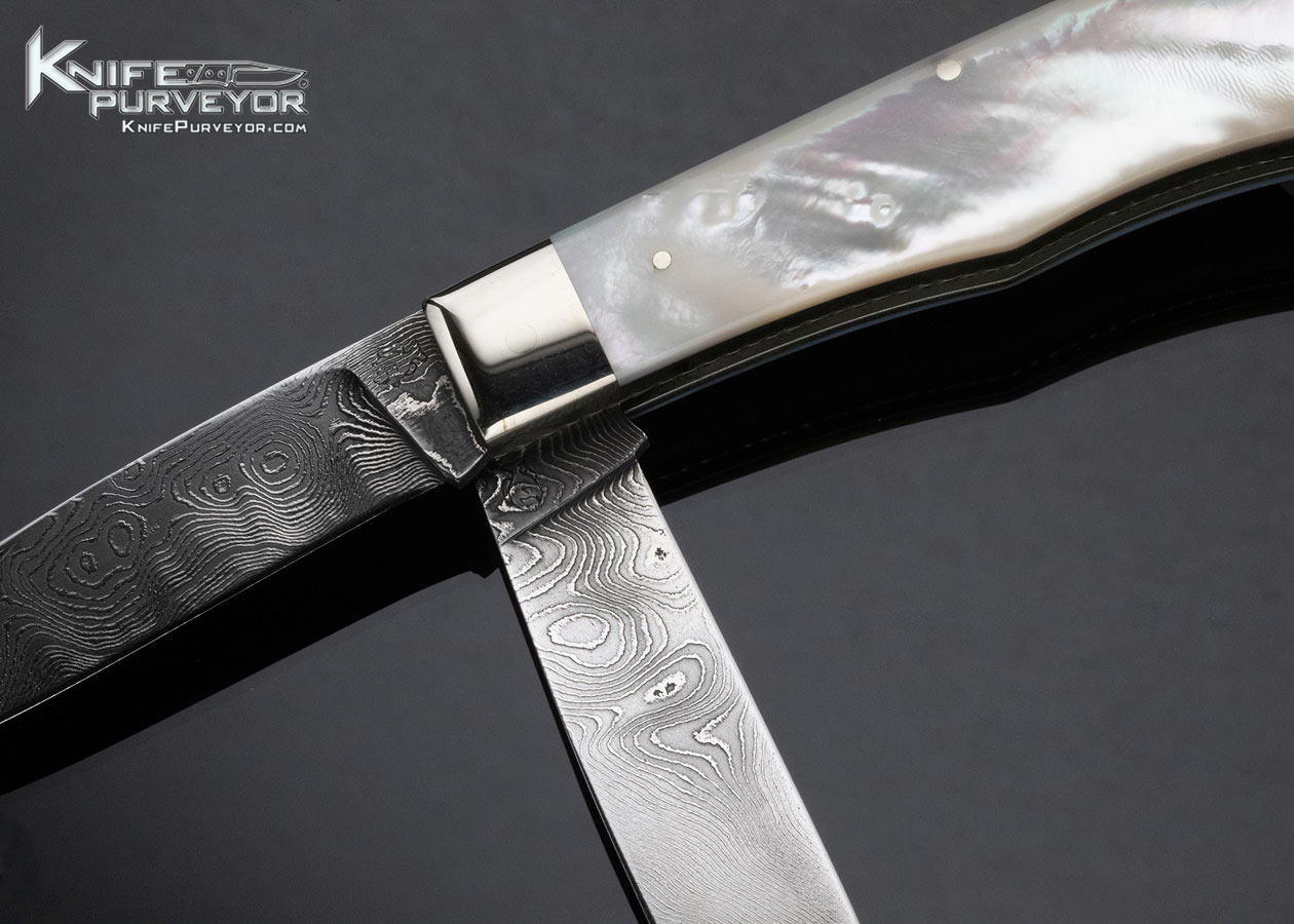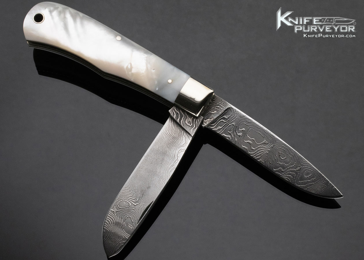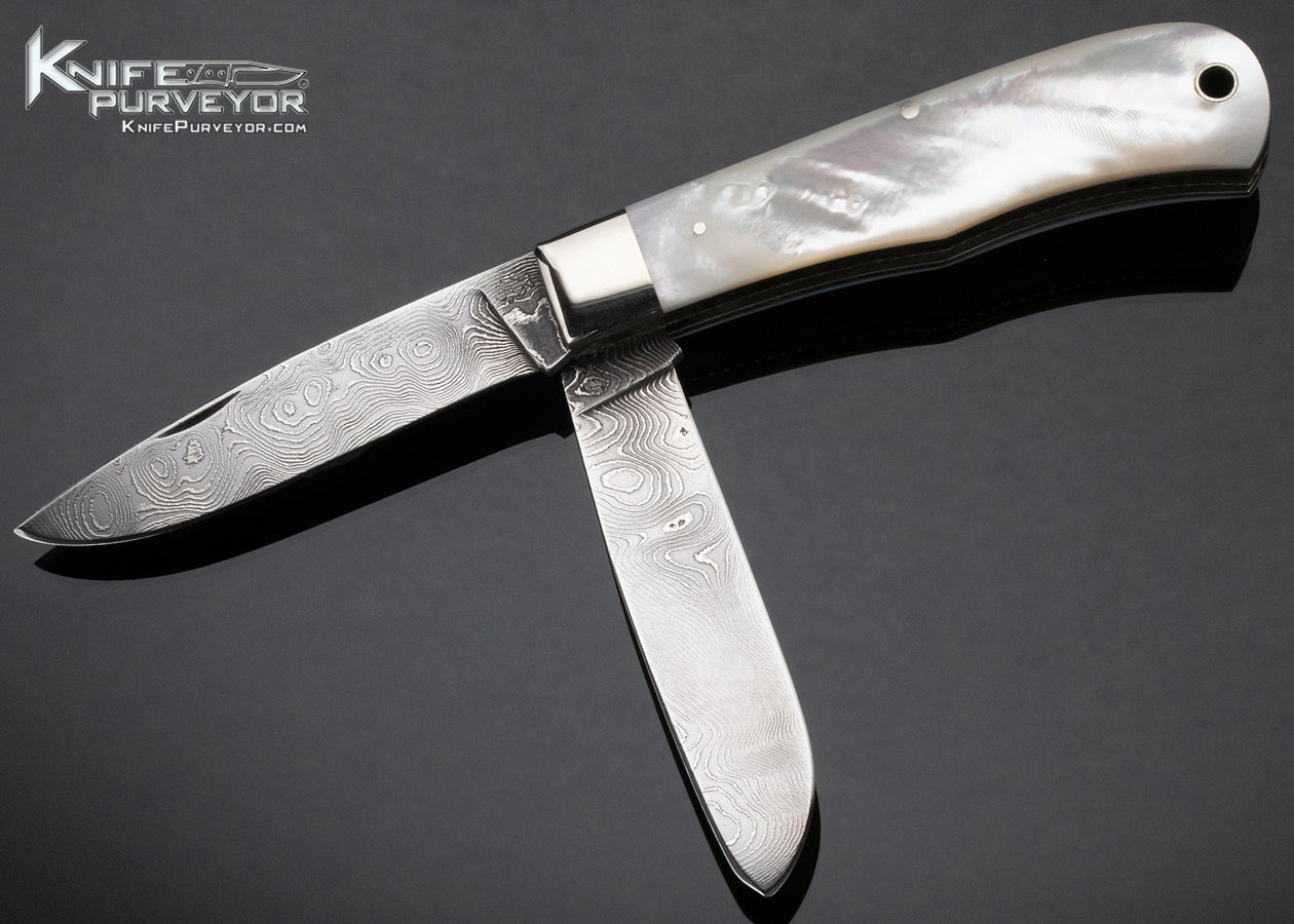 Don Hanson Custom Knife Two Blade Trapper Sole Authorship Damascus Mother of Pearl Slipjoint