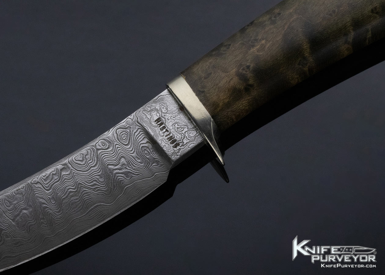 Don Hastings MS Custom Knife Damascus Burl Wood Upswept Skinner