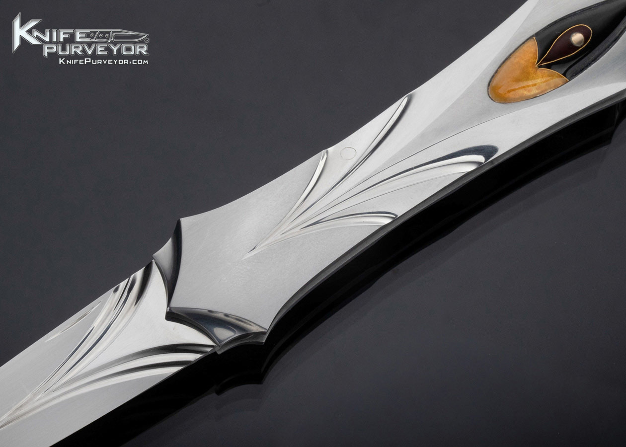 Elizabeth Loerchner Custom Knife Cloisonne and Fluted and Carved Steel Lockback