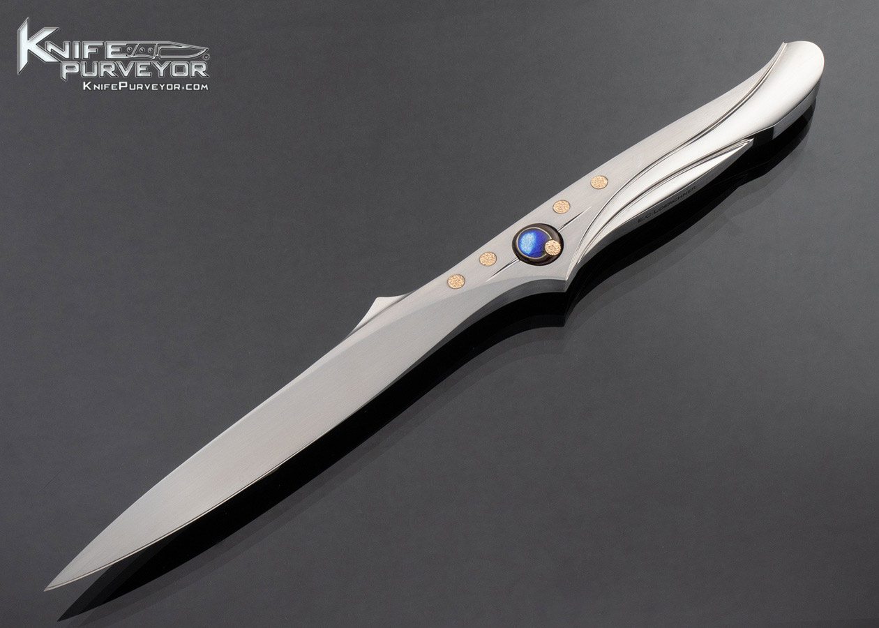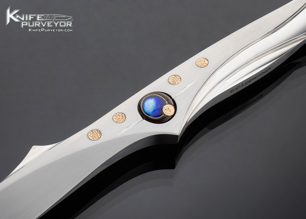 Elizabeth Loerchner Custom Knife Fluted Integral Fixed Blade with Cloisanne and 24Kt Gold Inlays