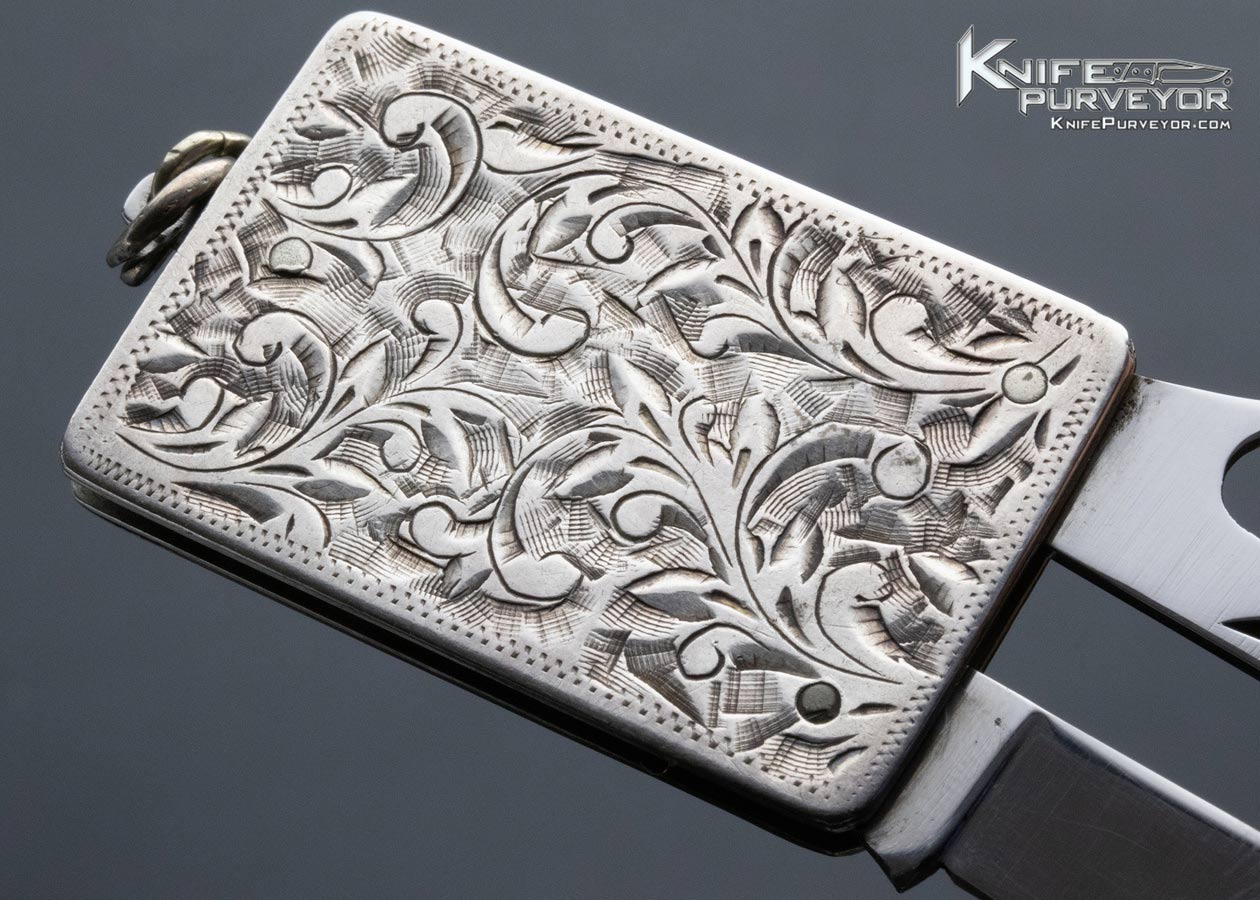 Engraved Sterling Silver 2 Blade Pocket Knife Pendant with Bottle Opener