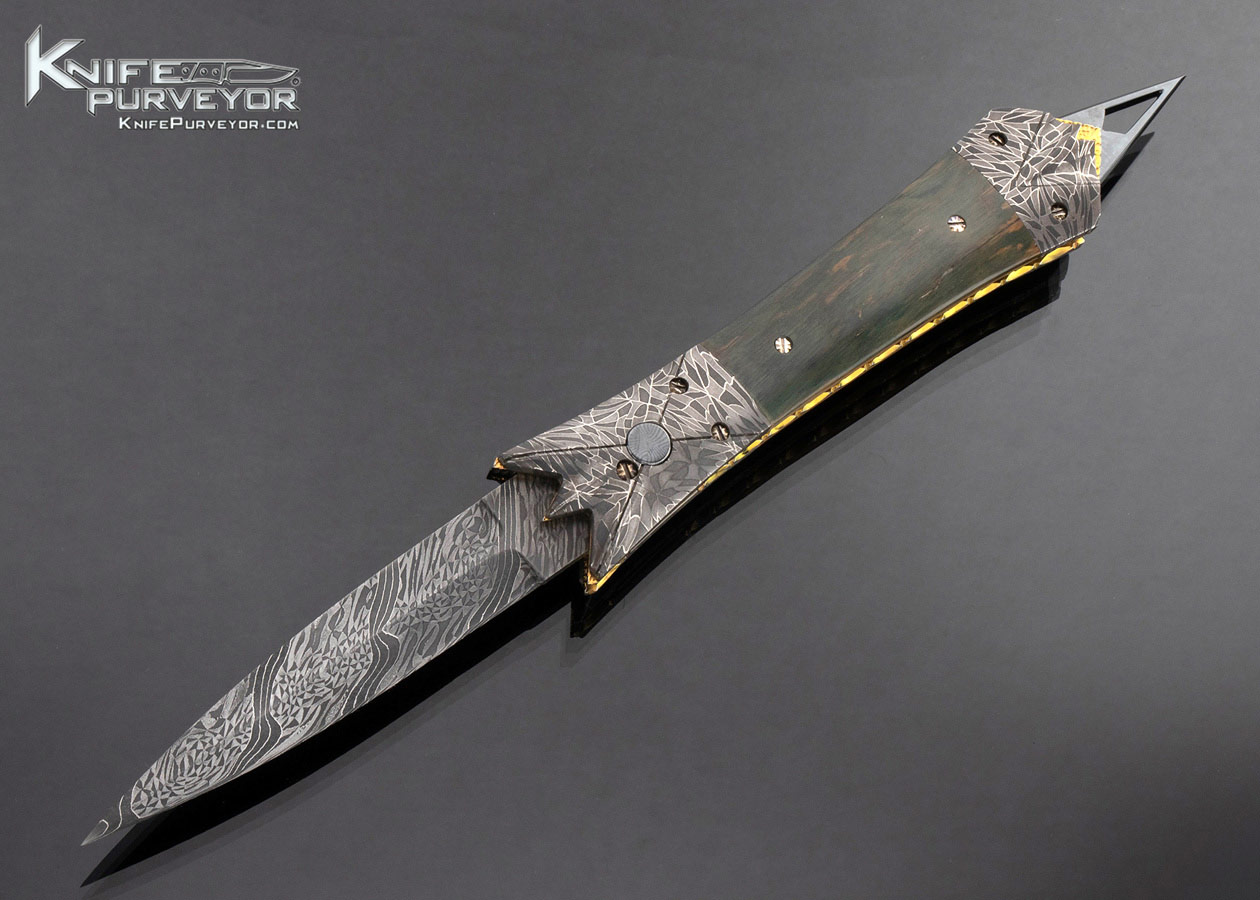 Frank Potter Custom Knife Robert Eggerling Mosaic Damascus and Mammoth Automatic Linerlock with Skull Crusher
