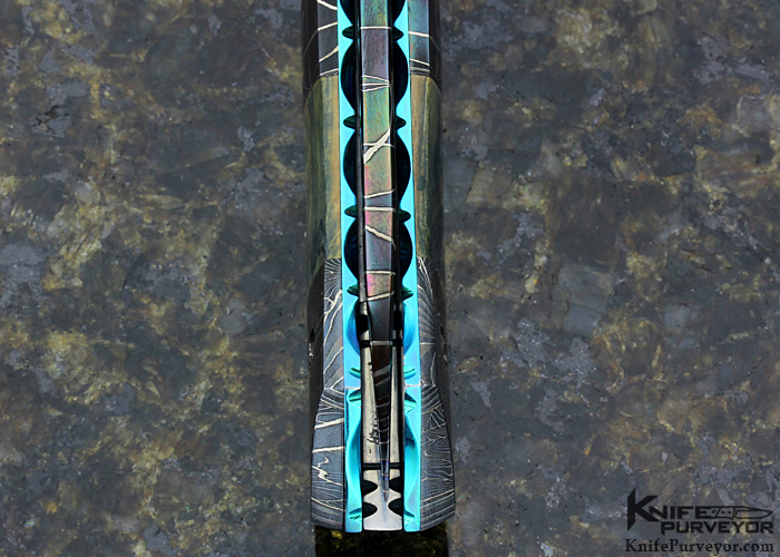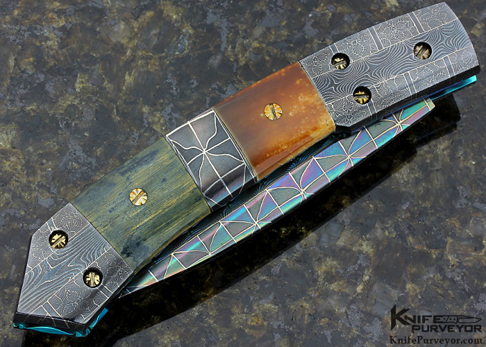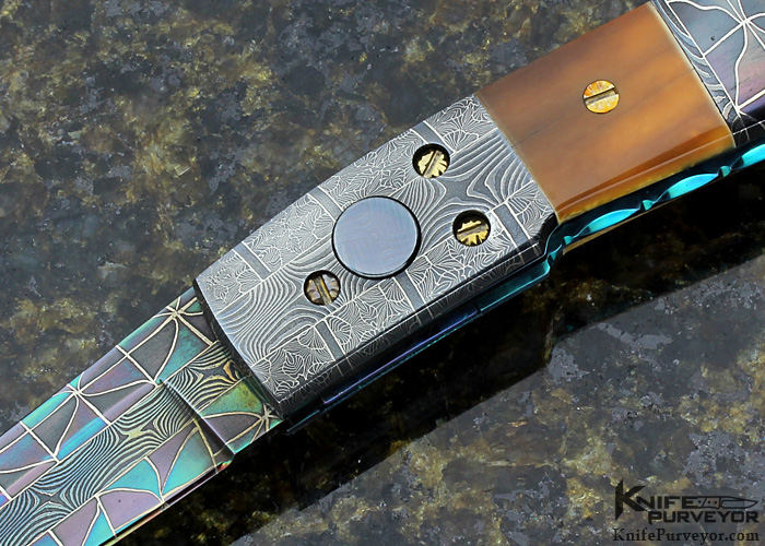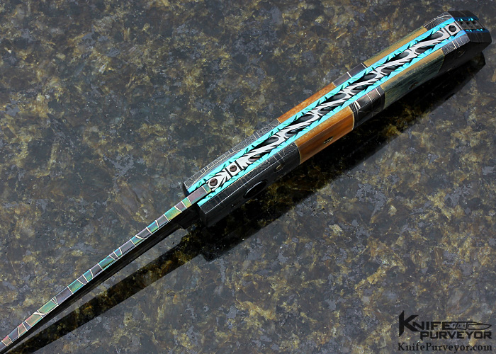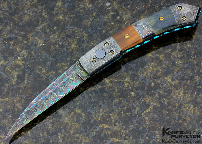 Frank Potter Custom Knife Blued Robert Eggerling Mosaic Damascus Autotmatic Linerlock