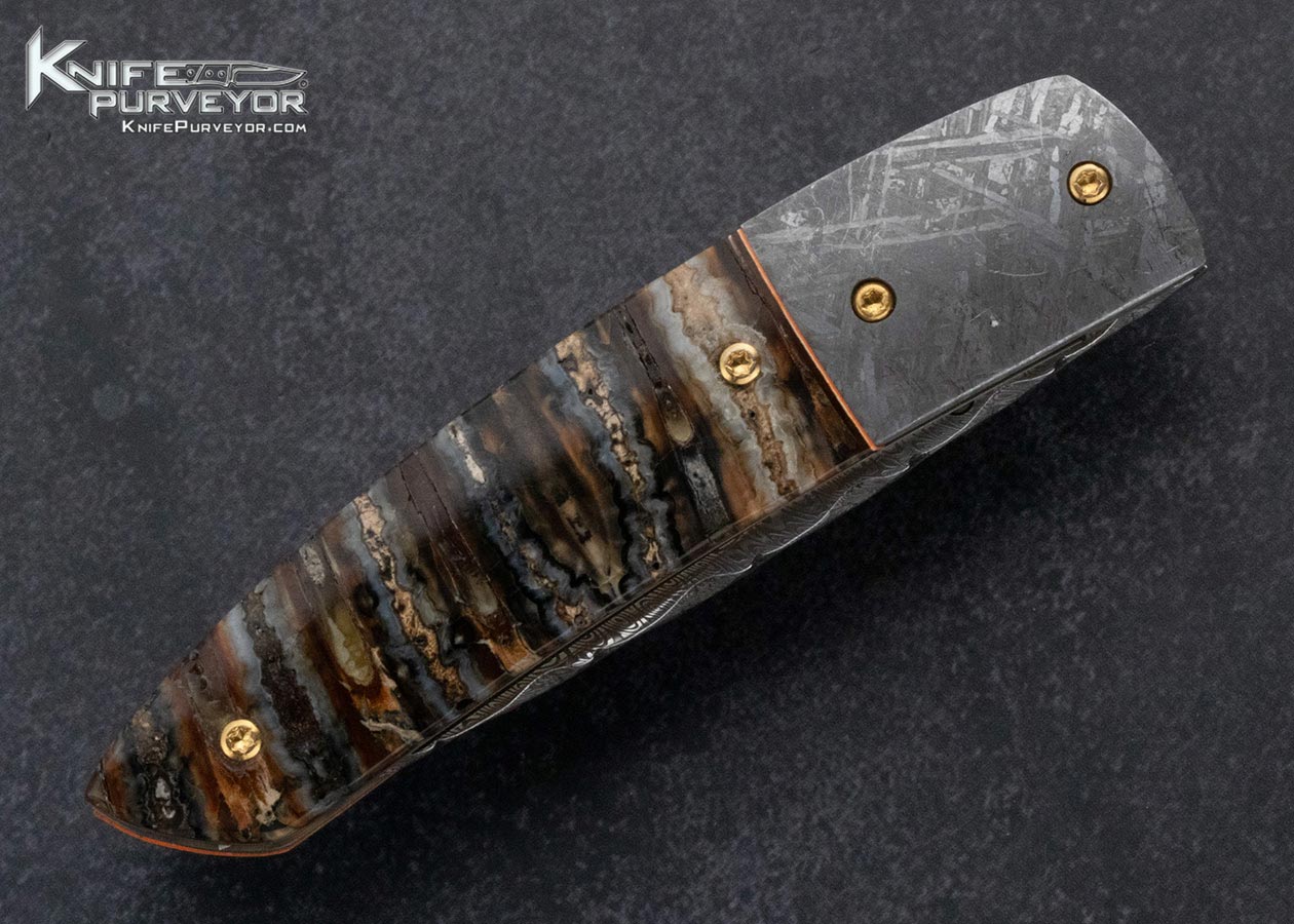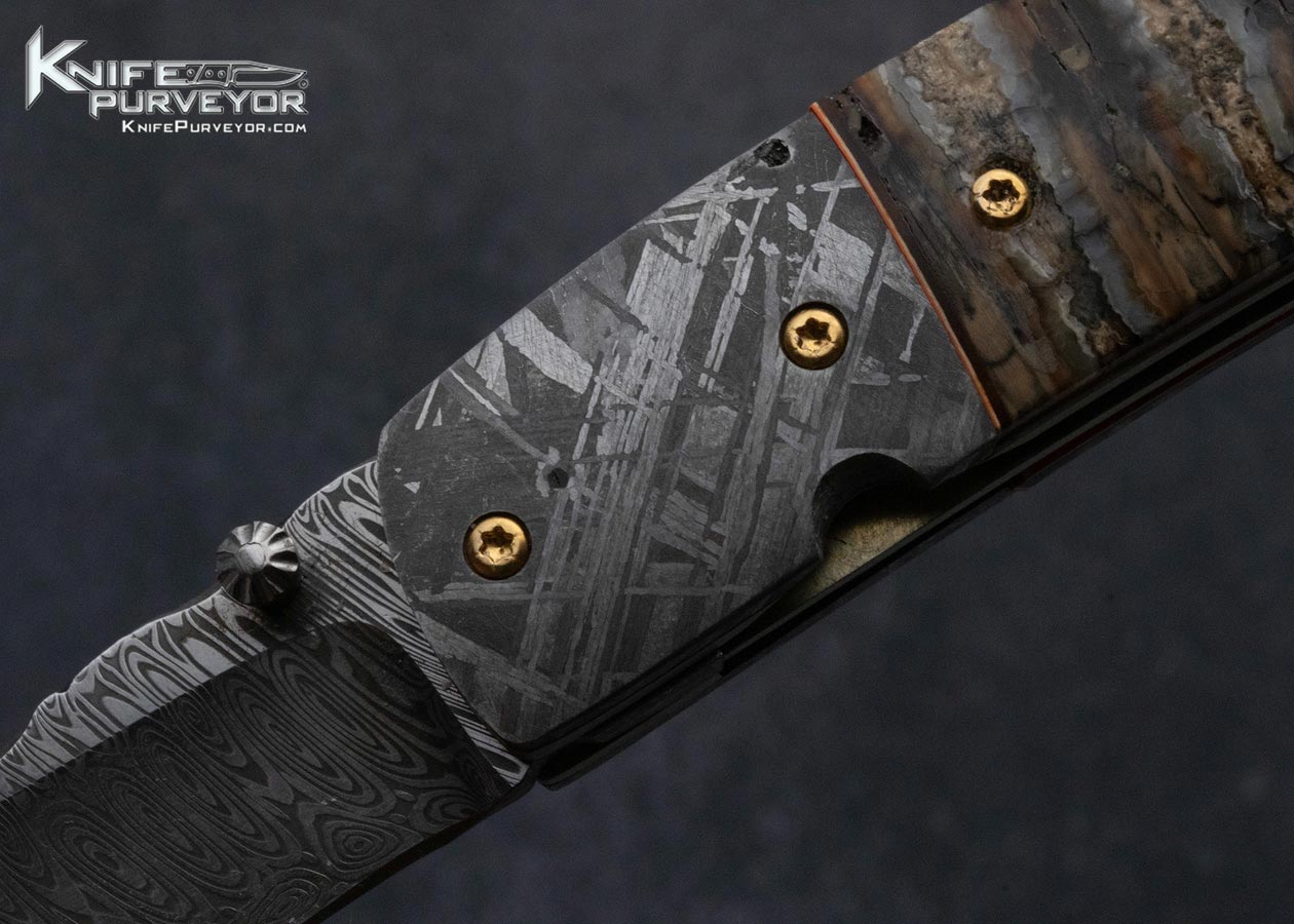 George Muller Custom Knife Damasteel Meteorite and Mammoth Molar Linerlock