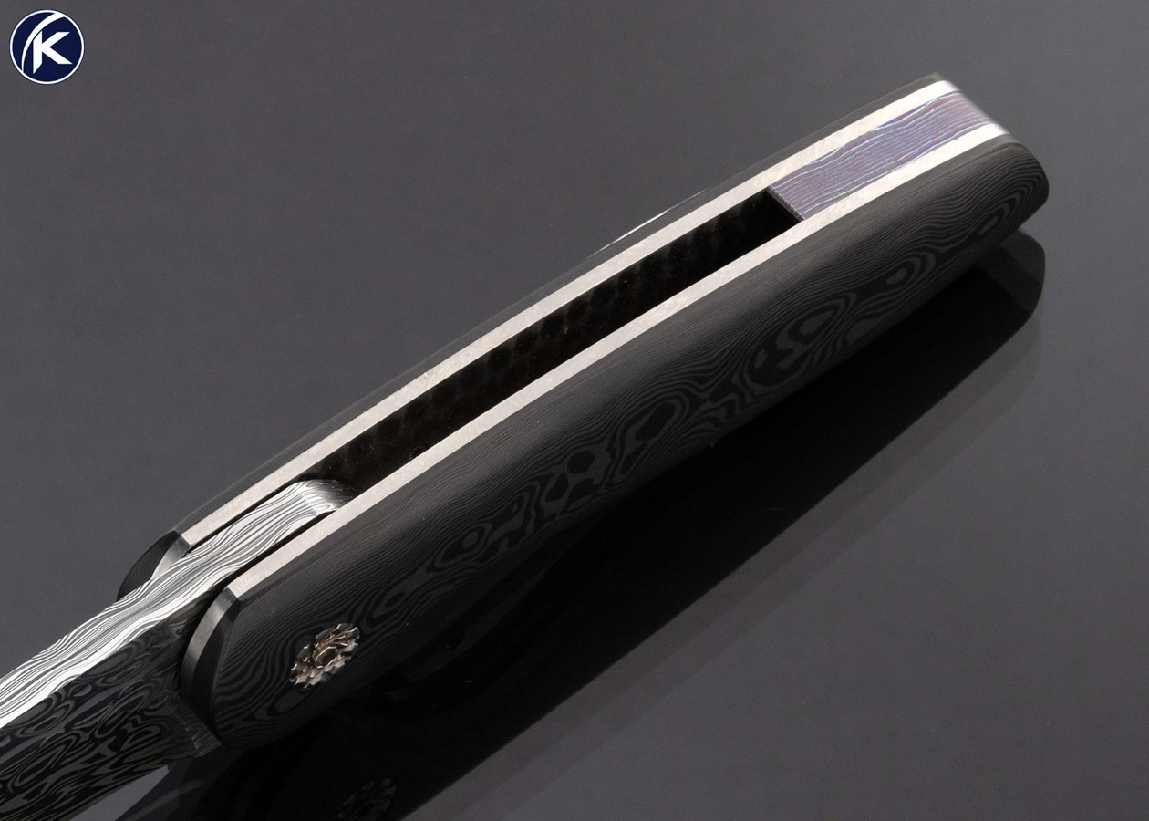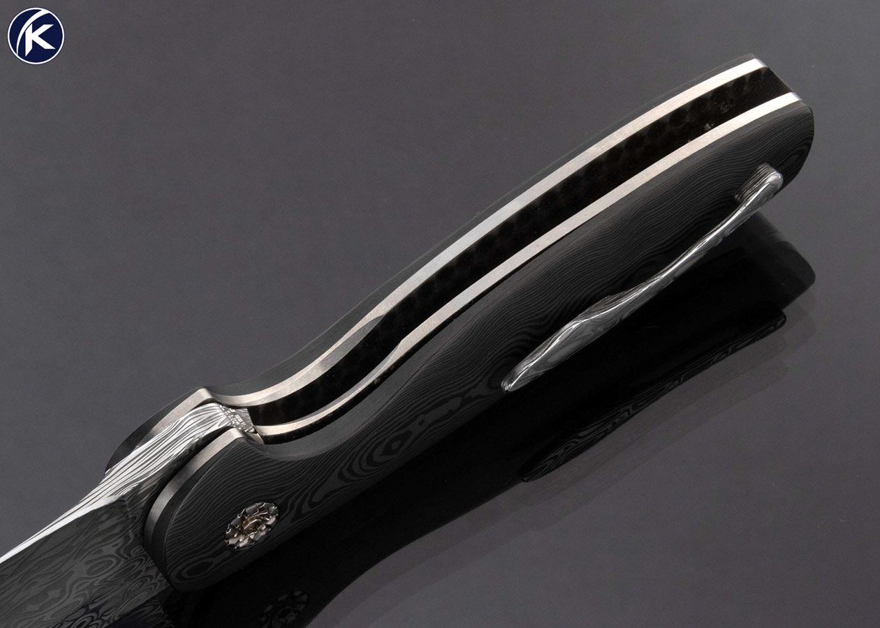 Glenn Are Hovin Custom Knife Damascus with Fancy Carbon Fiber Scales Flipper
