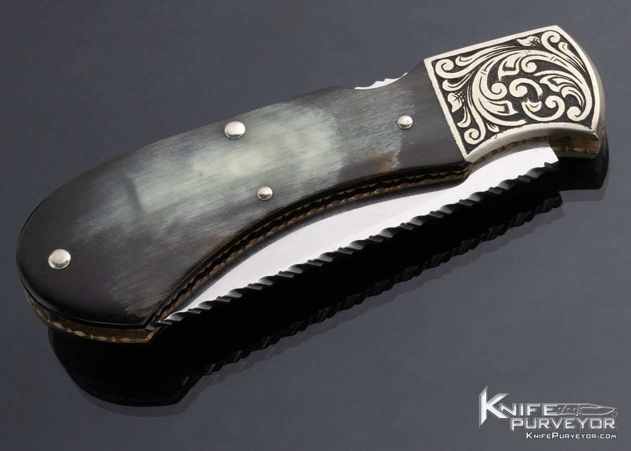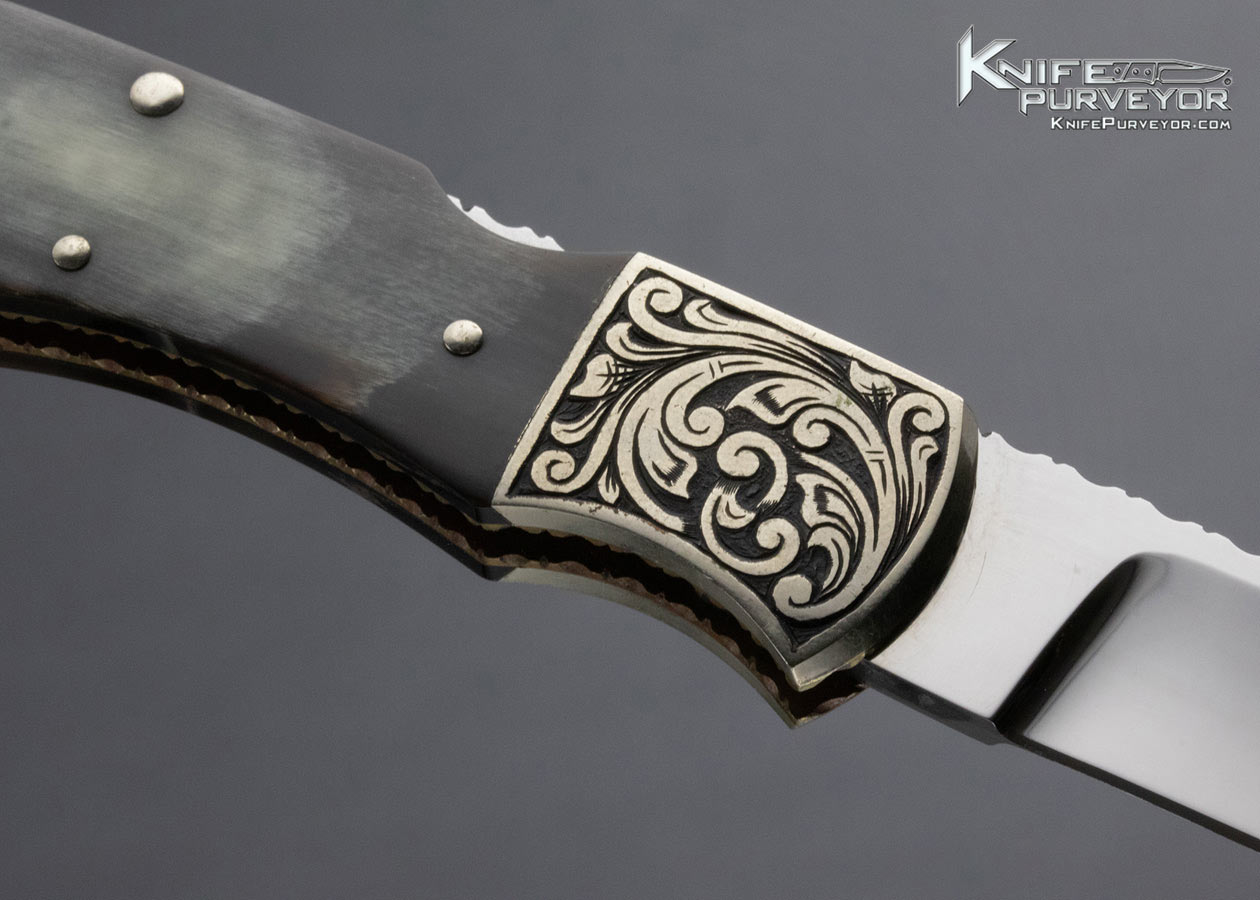 Harvey McBurnette Custom Knife Sole Authorship Engraved Horn Lockback