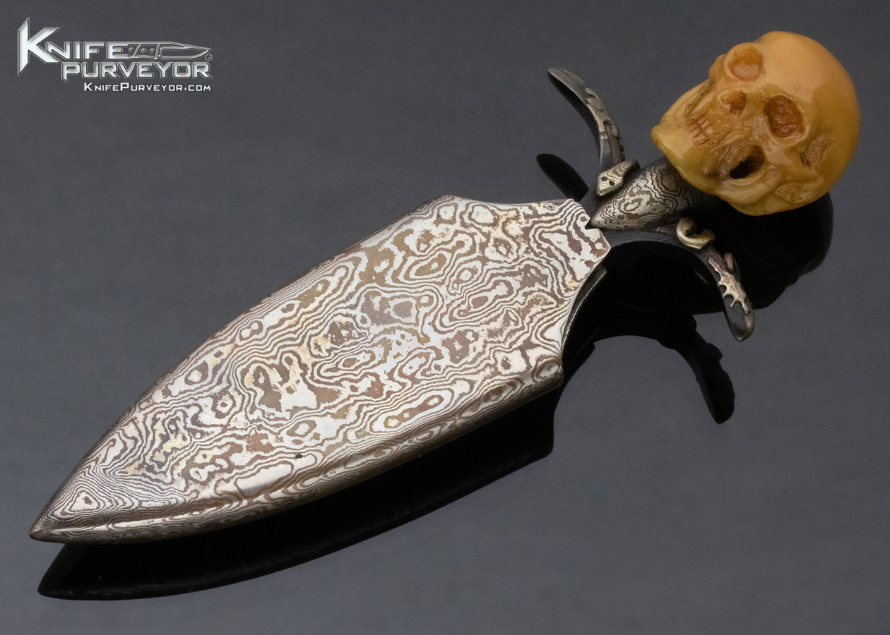 Hugh Bartrug Custom Knife Blued Damascus & Mokume Push Dagger