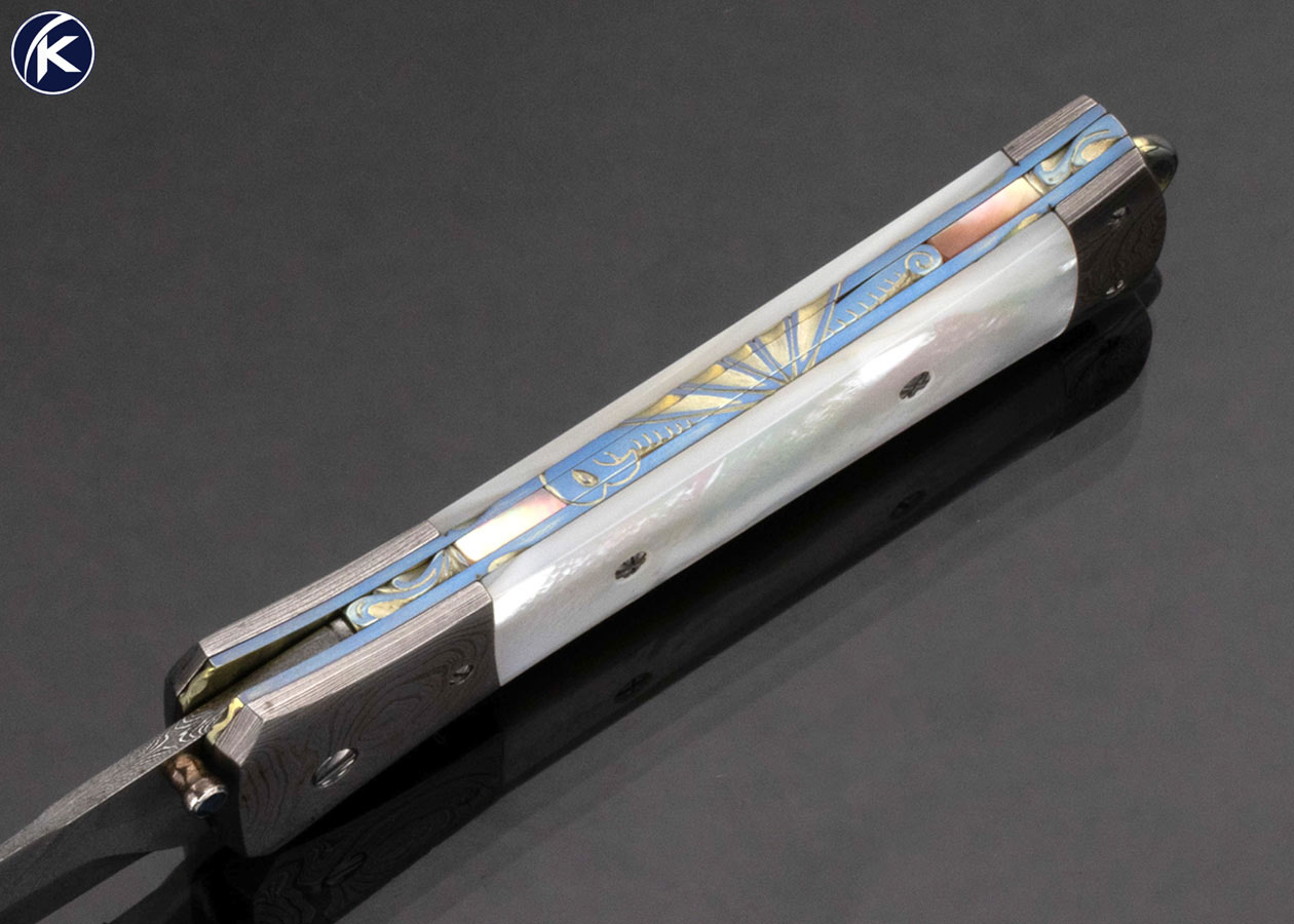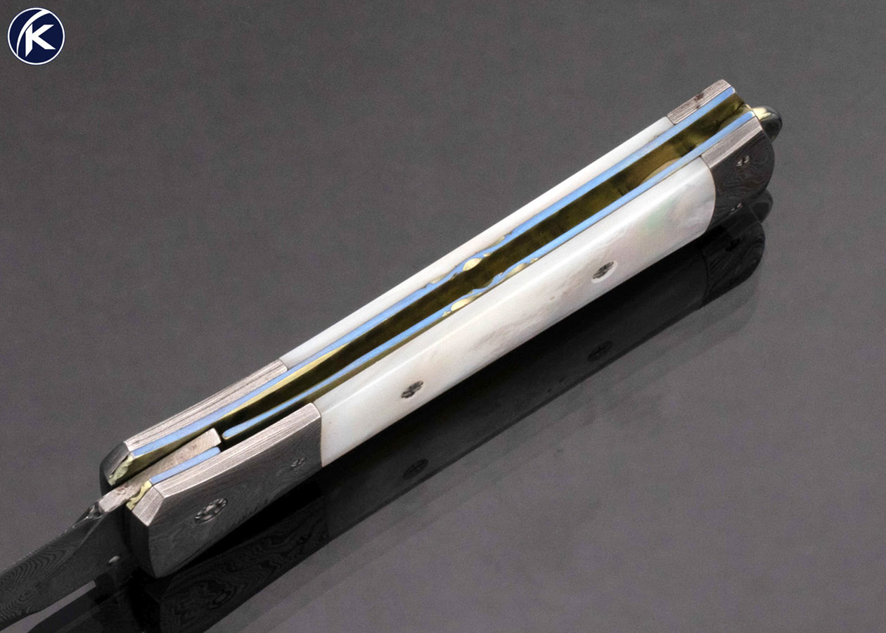 Jason Williams Custom Knife Mother of Pearl and Damascus Linerlock Dagger
