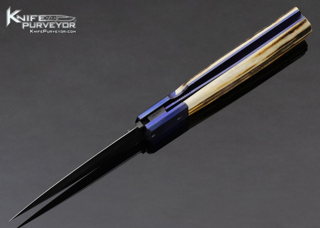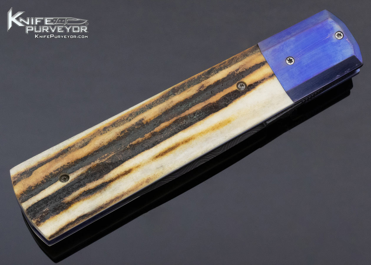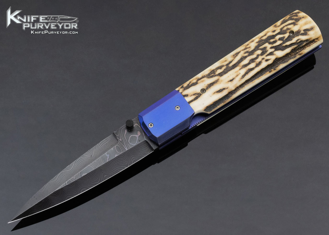 Jeff Chaffee Custom Knife Stag and Damascus Folding Dagger