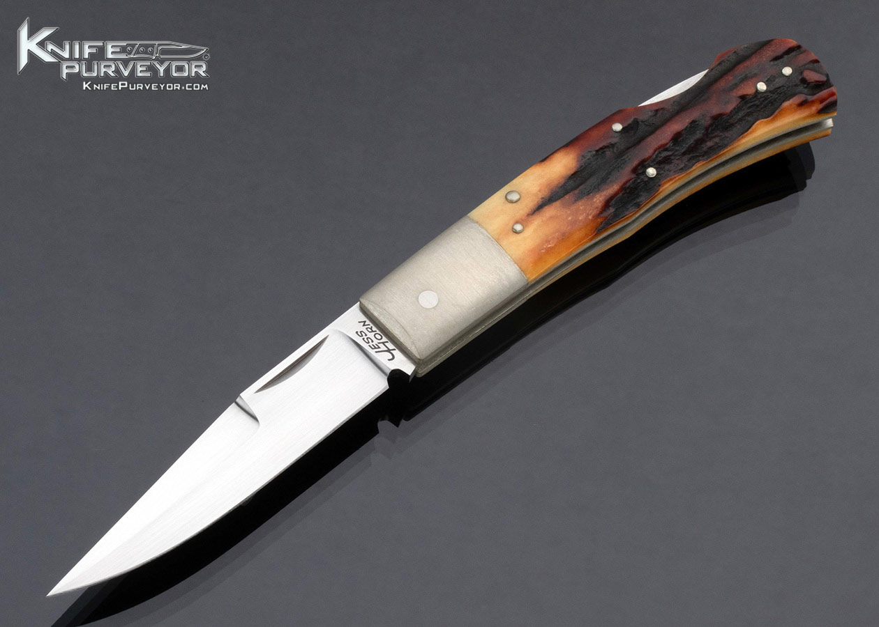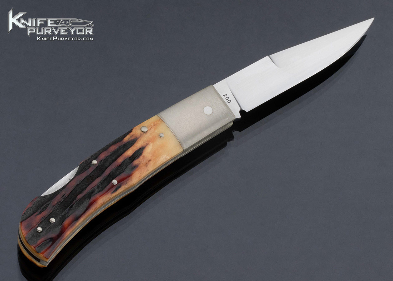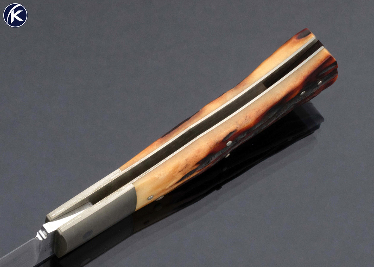 Jess Horn Custom Knife FBK Nickel Silver Bolsters and Amber Stag Lockback #200