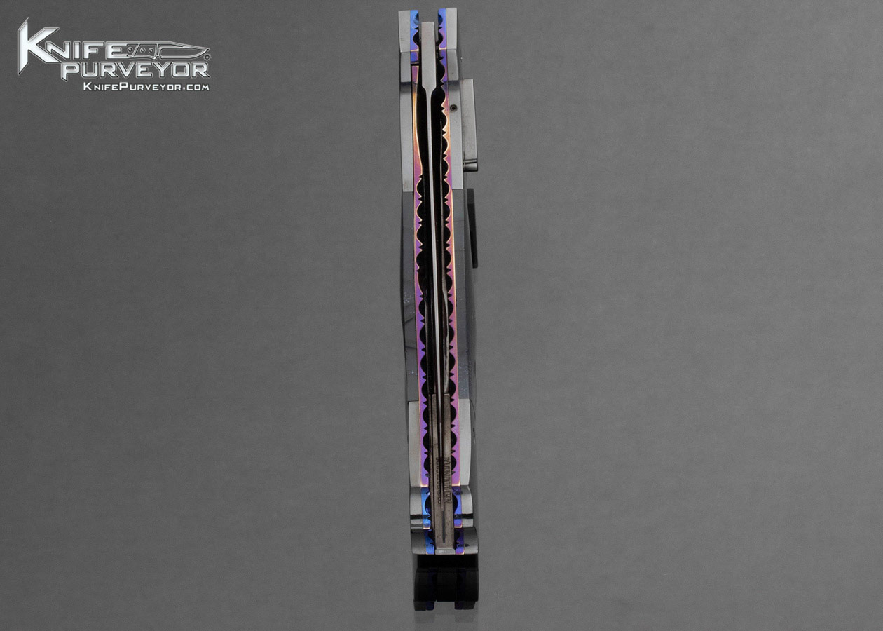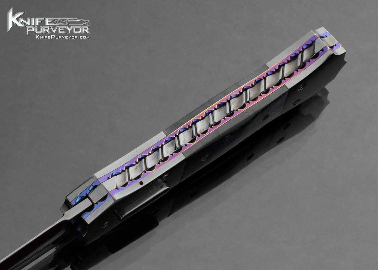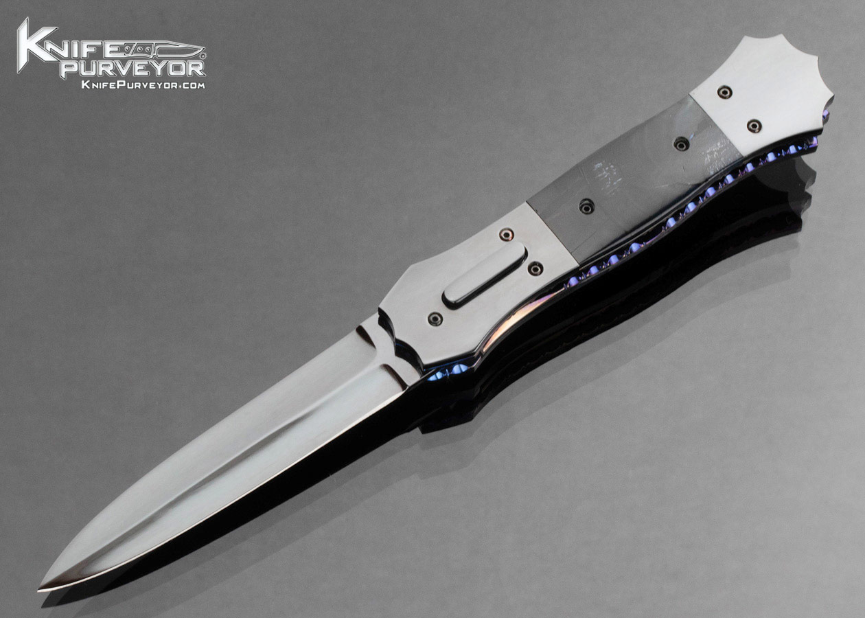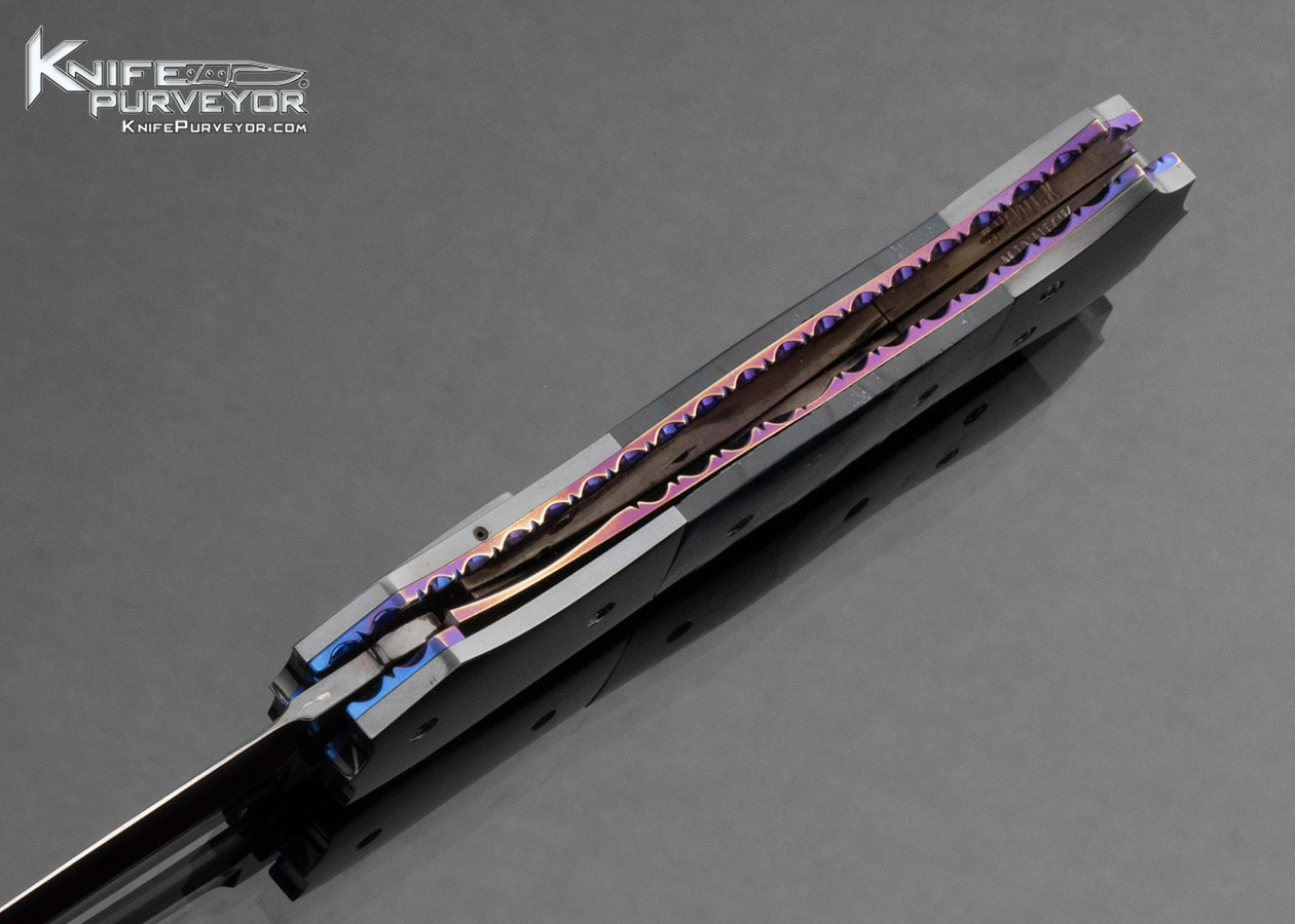 Jim Minnick Custom Knife Black Oxide Polished and Cross Cut Mammoth Automatic Linerlock