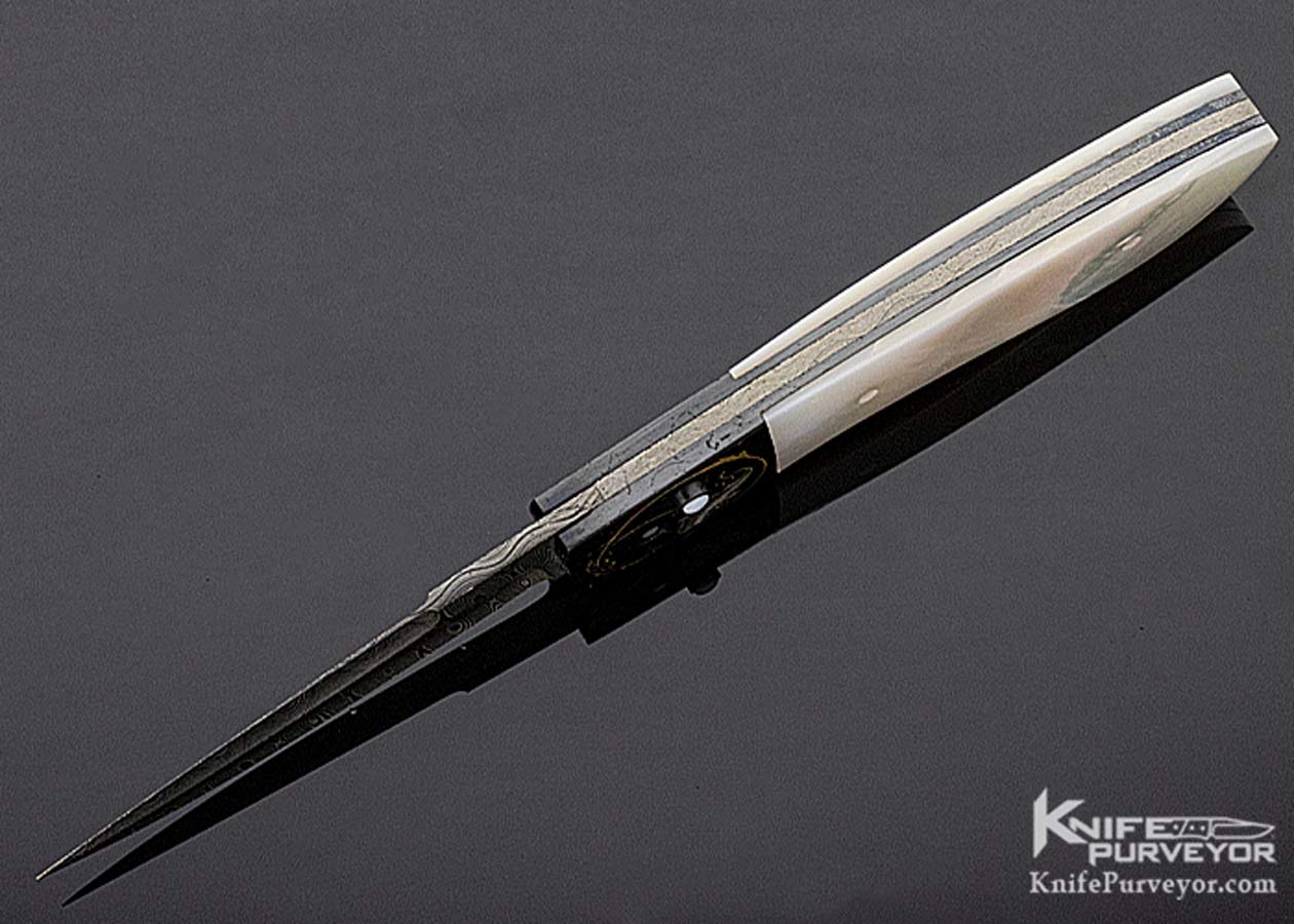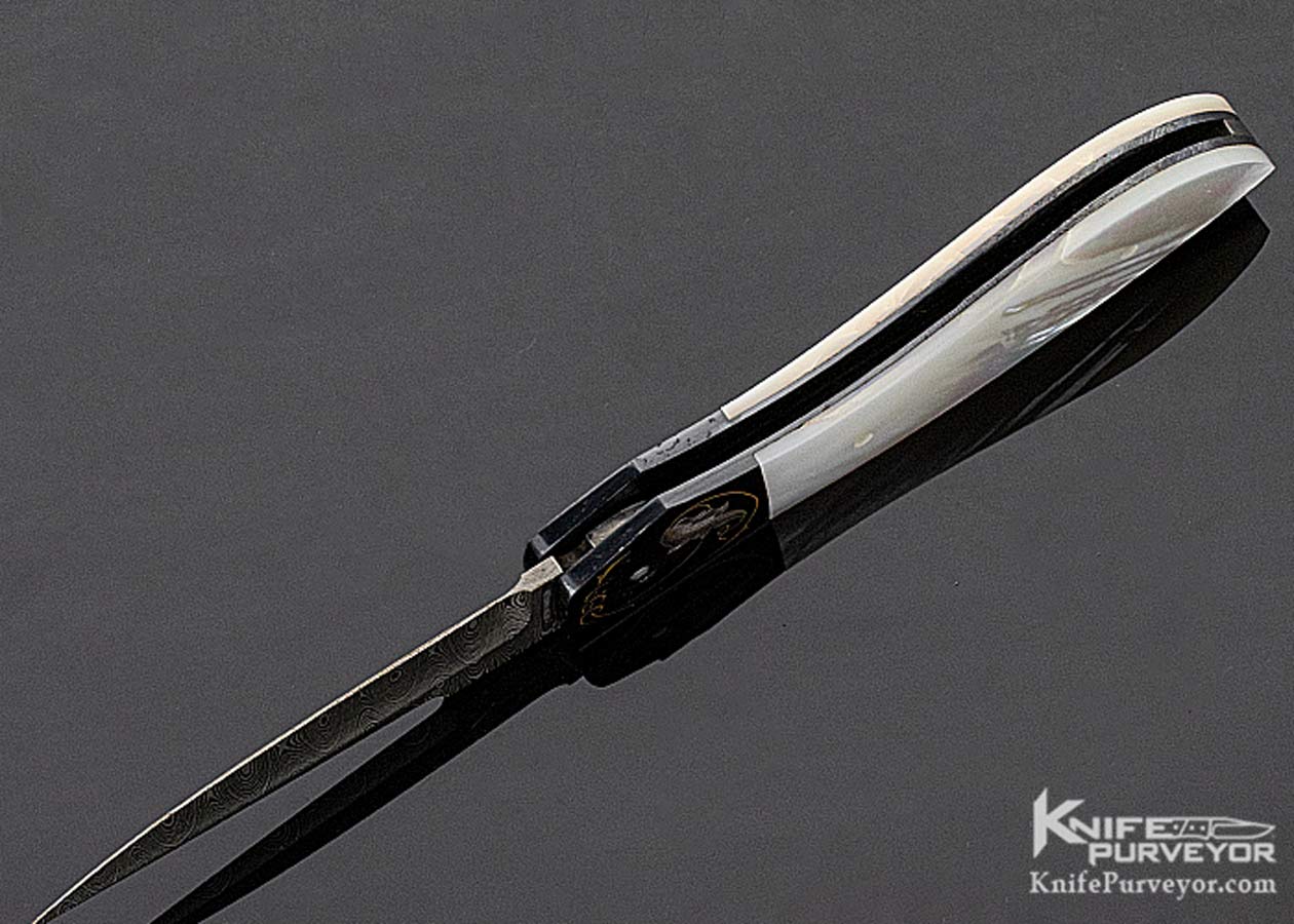Jim Minnick Custom Knife Damascus Pearl & Damascus Button Lock Automatic Engraved by Joyce Minnick