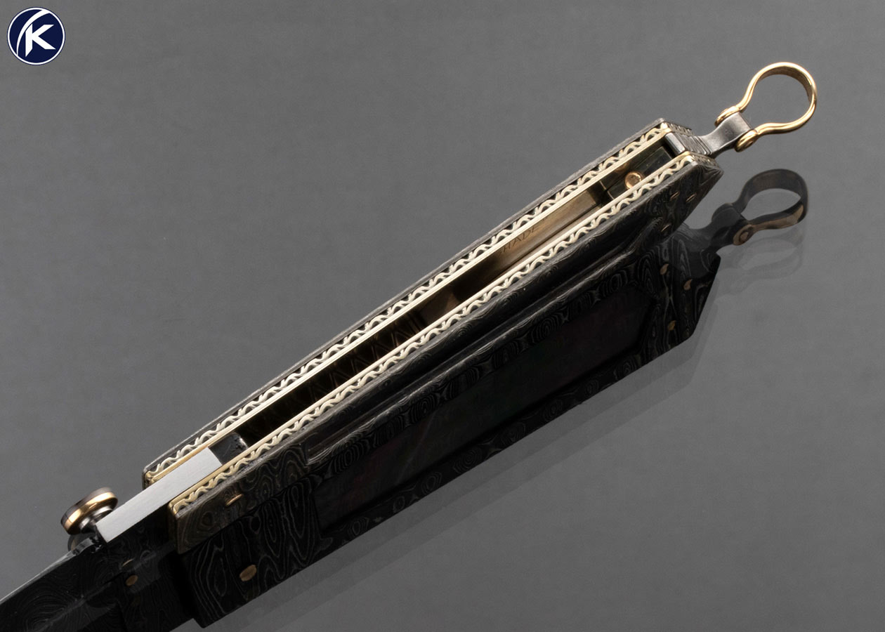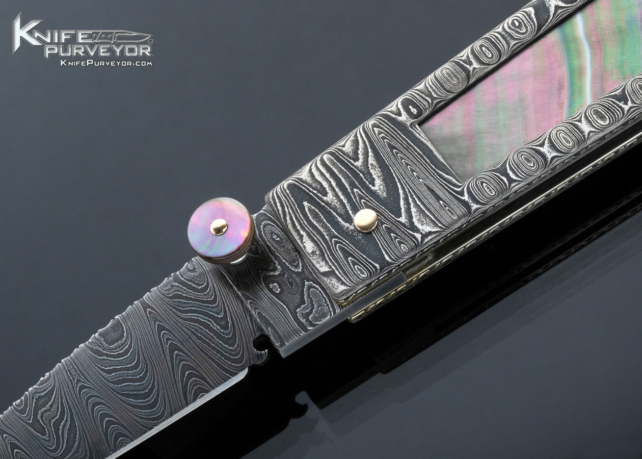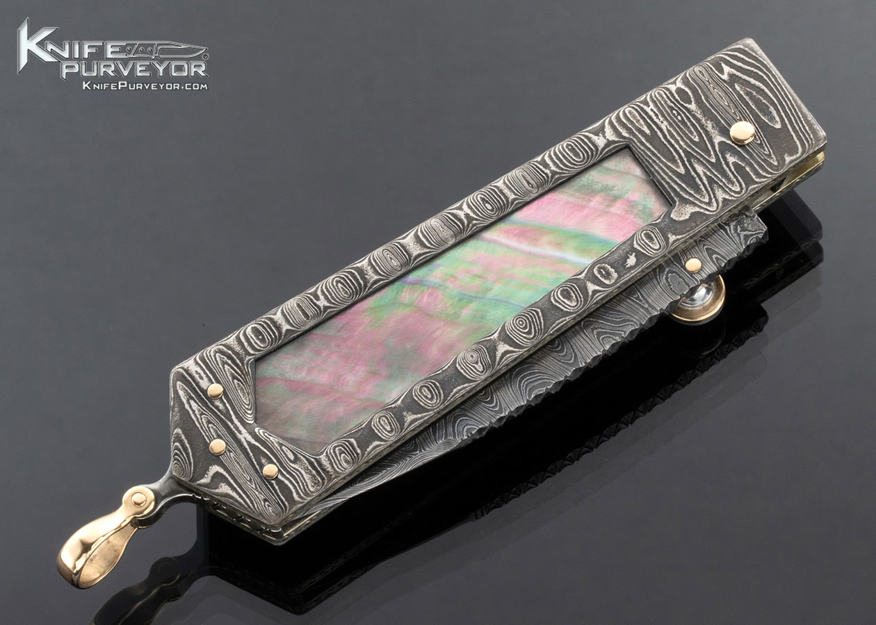 Jim Schmidt Custom Knife SCHMIDT 4/98 #1 “NightShade” Sole Authorship Damascus and Black Lip Pearl Window Frame Lockback