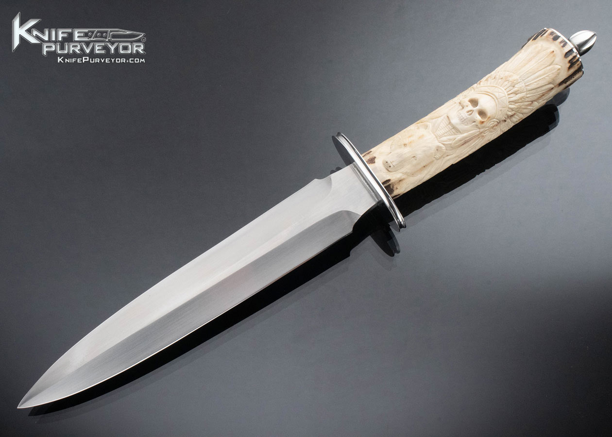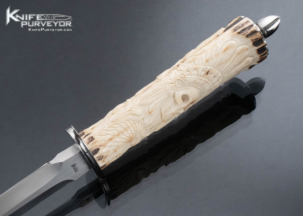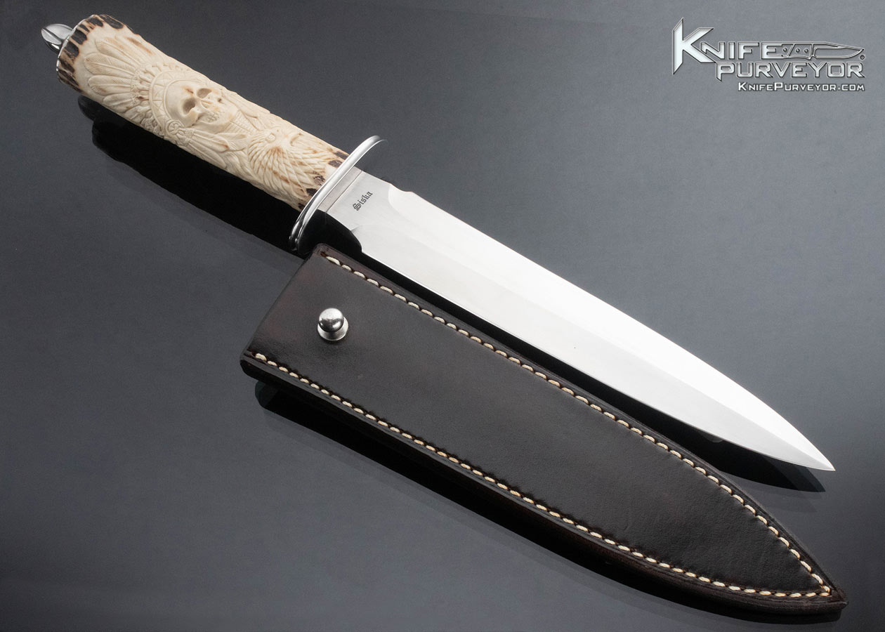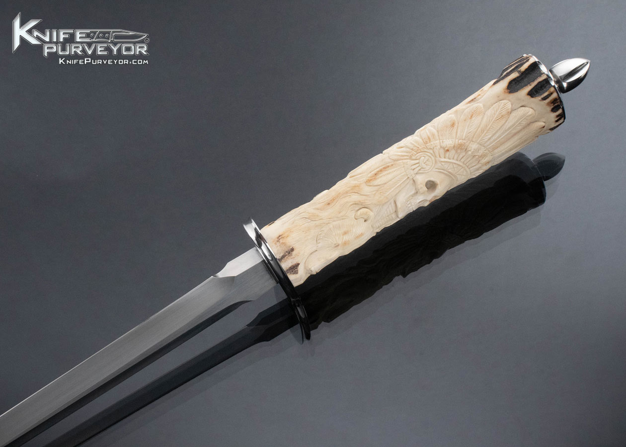 Jim Siska Custom Knife Carved Stag Handle Long Dagger with Sheath